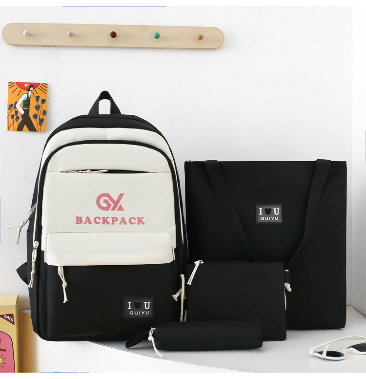 彤彤兔 简约校园大学生学生背包四件套韩版校园大容量双肩包女校园新款书包