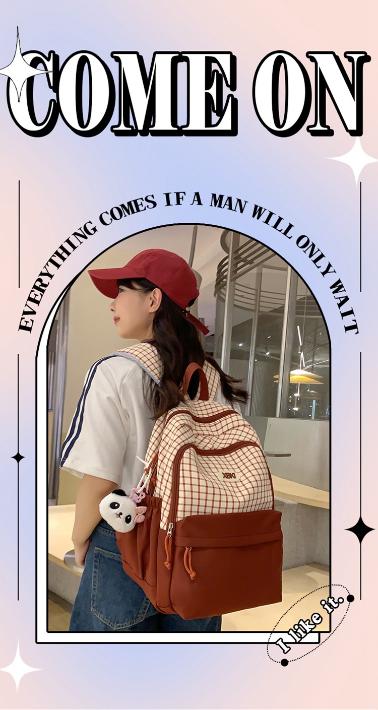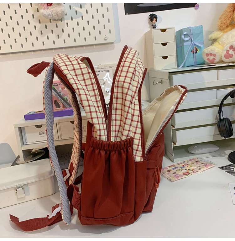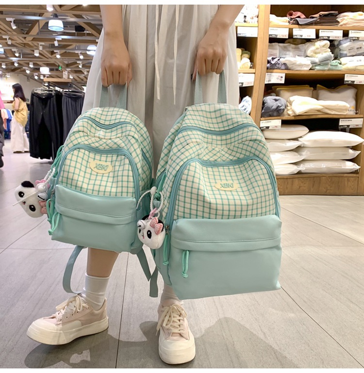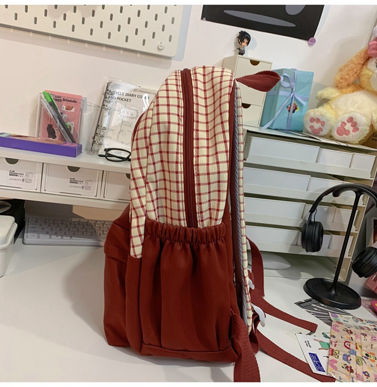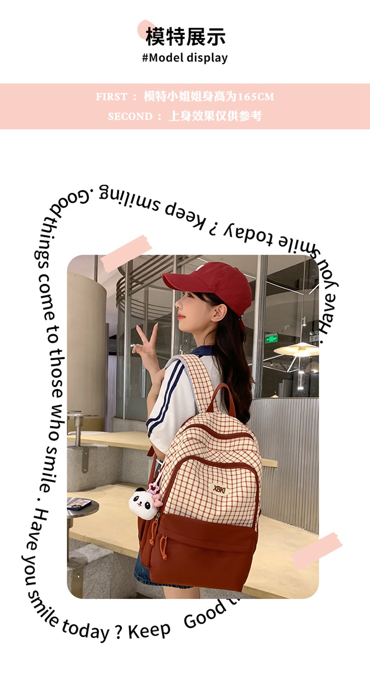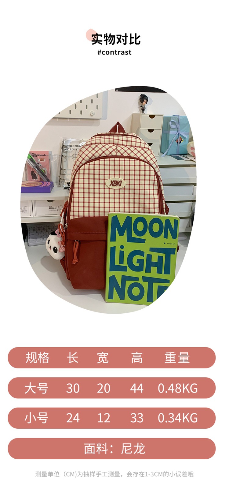商品名称:彤彤兔 ins风书包女大学生少女格子可爱双肩包韩版森系大容量背包