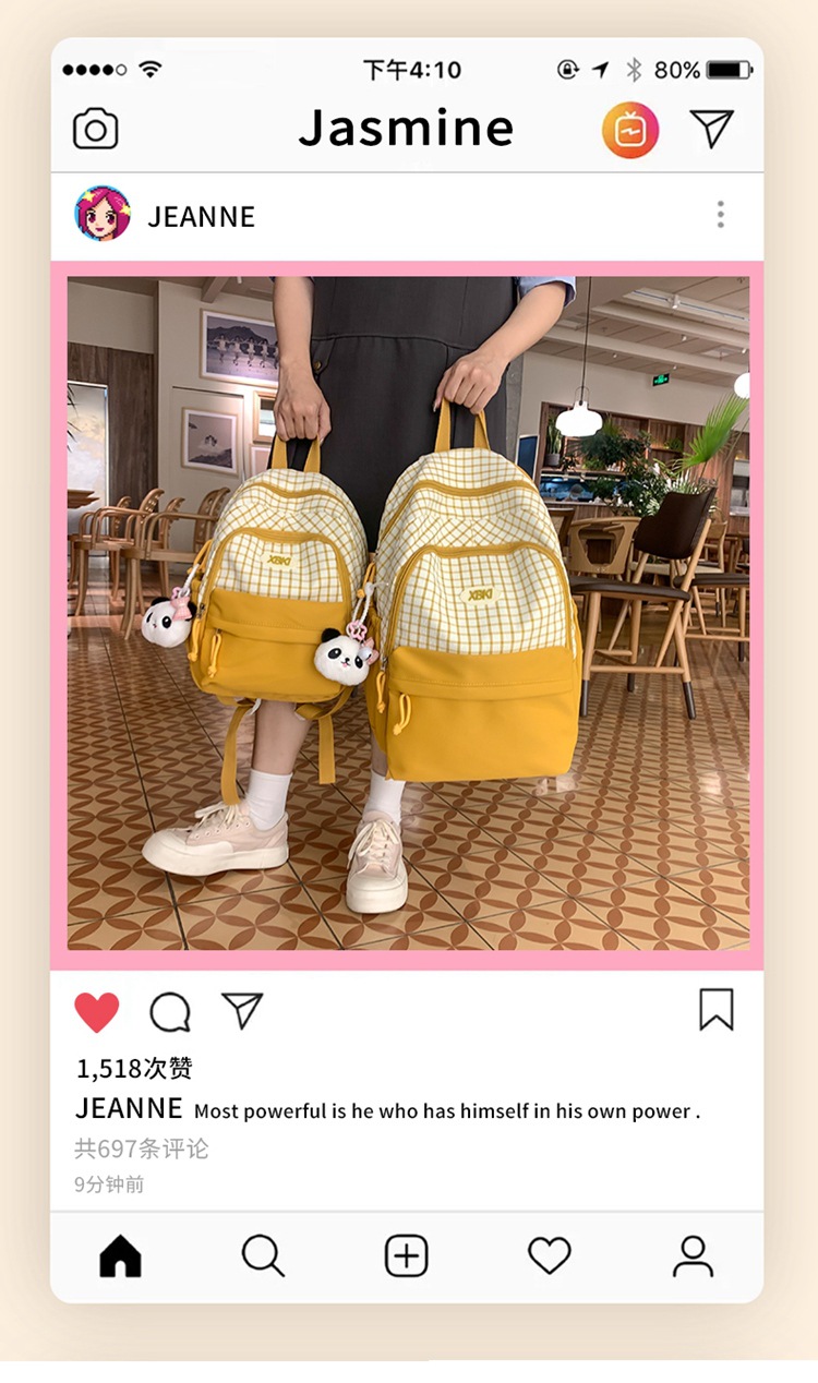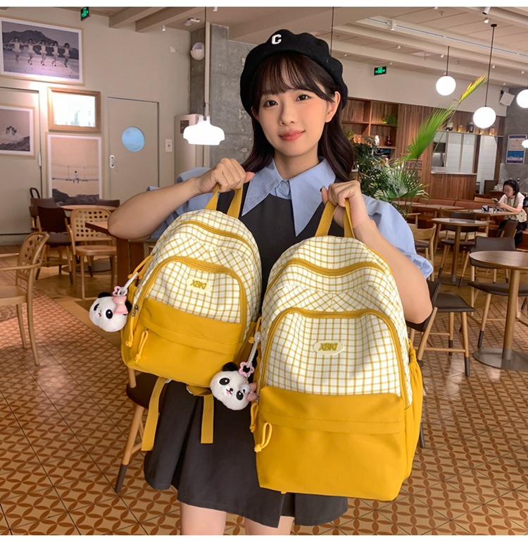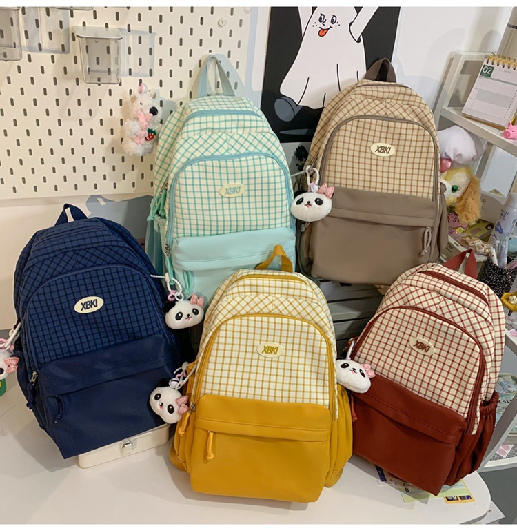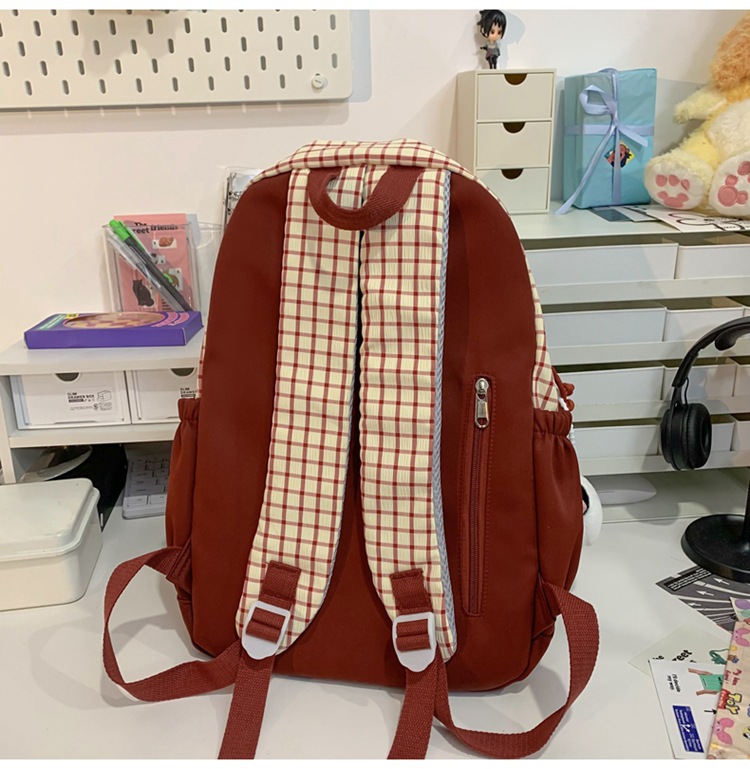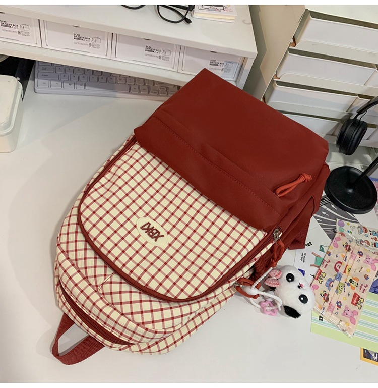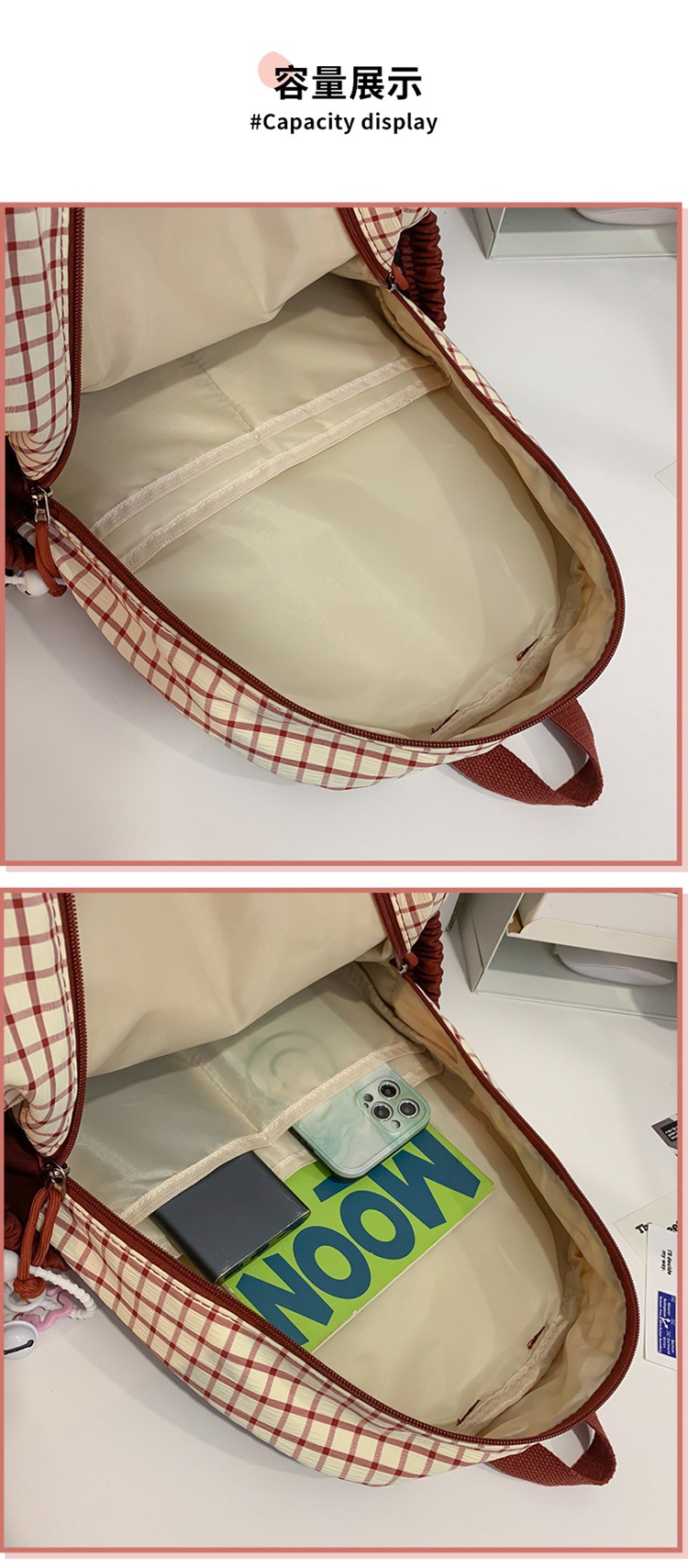 商品名称:彤彤兔 ins风书包女大学生少女格子可爱双肩包韩版森系大容量背包