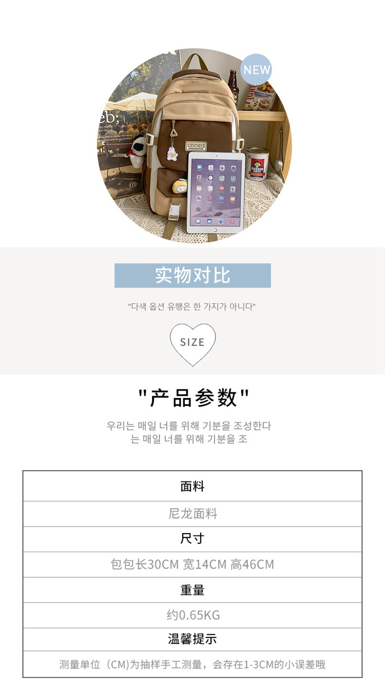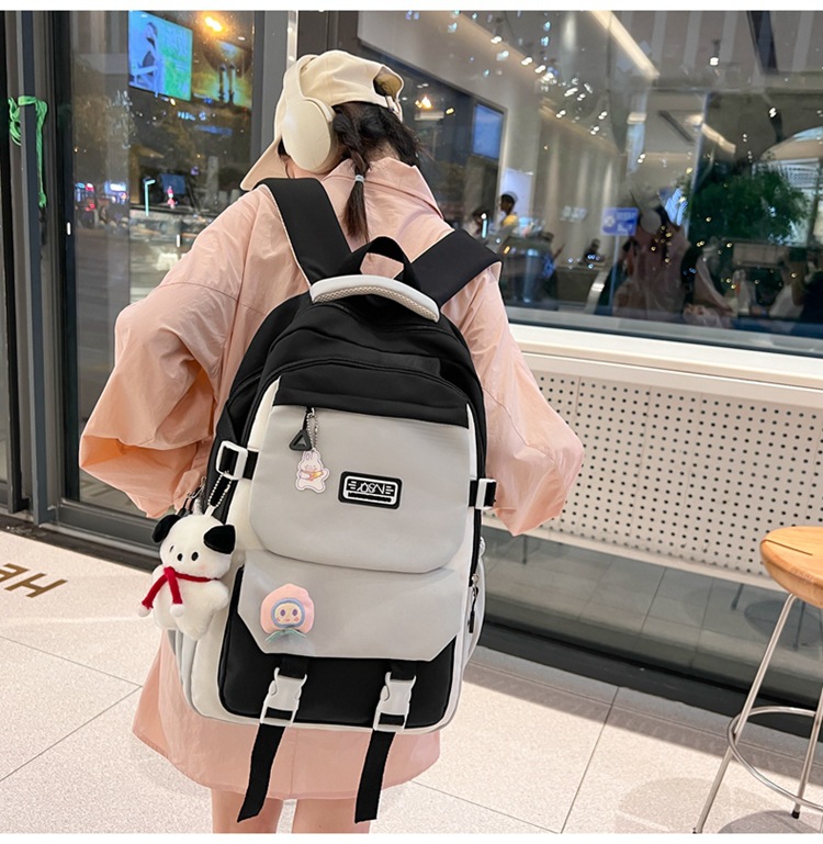 商品名称:彤彤兔 书包女生日系ins学院高中百搭撞色双肩包小众设计大学生背包