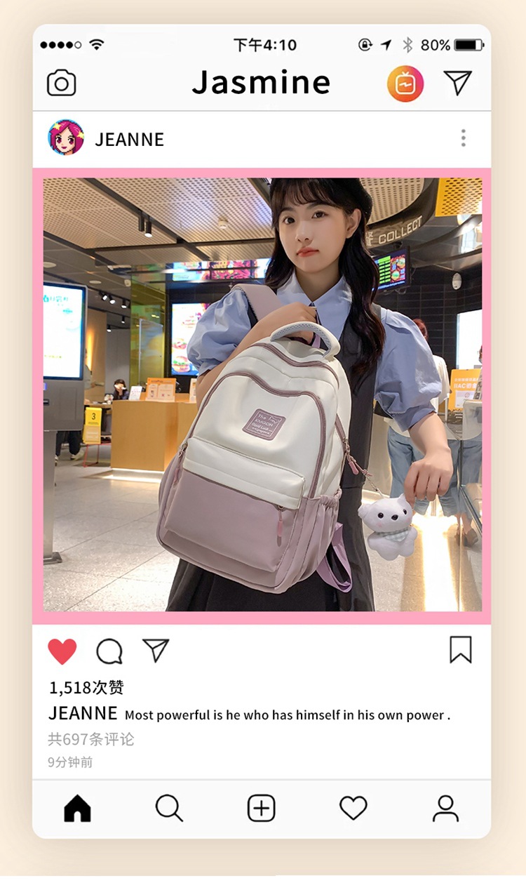 商品名称:彤彤兔 书包女韩版撞色小清新大学生背包校园ins风森系简约 双肩包女