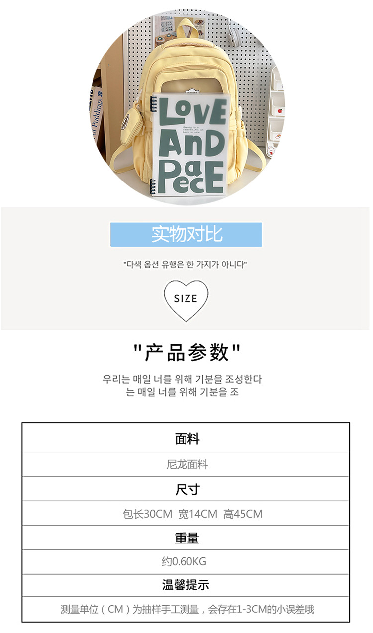 商品名称:彤彤兔 书包女韩版纯色小清新大学生背包校园ins风森系简约双肩包女