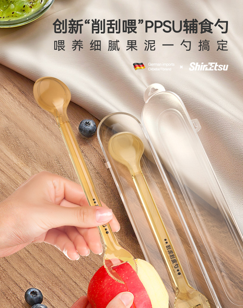 ckbebe带刮皮功能辅食水果刮泥勺子儿 婴儿宝宝辅食勺子工具 果泥勺6个月以上