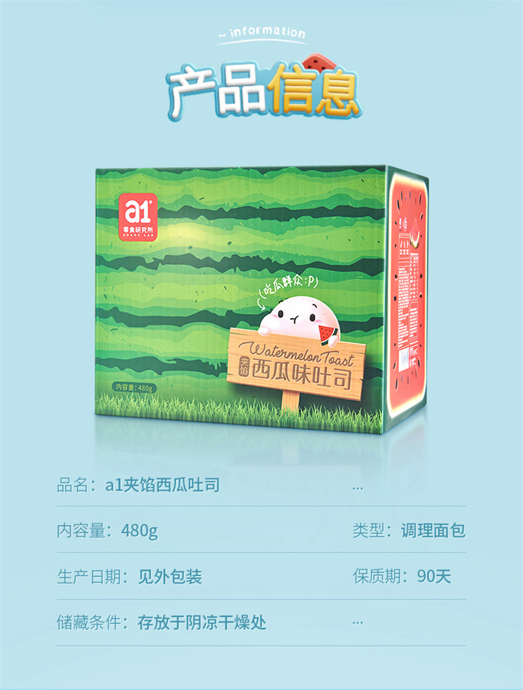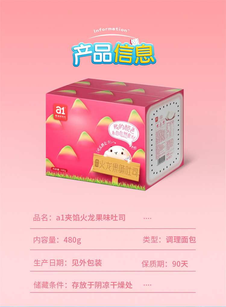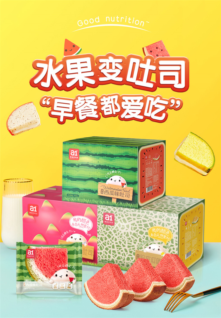 商品名称:a1 西瓜吐司480g/哈密瓜吐司480g/火龙果吐司480g整箱休闲蛋糕点心早餐面包网红懒人