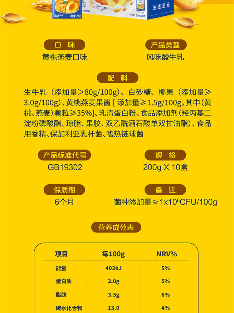 纯甄酸牛乳黄桃燕麦味200g×10包