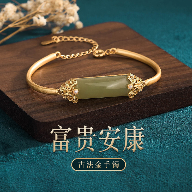 彤彤兔 中国风国潮镶嵌合成玉石青玉厚磨砂工艺复古宫廷手镯