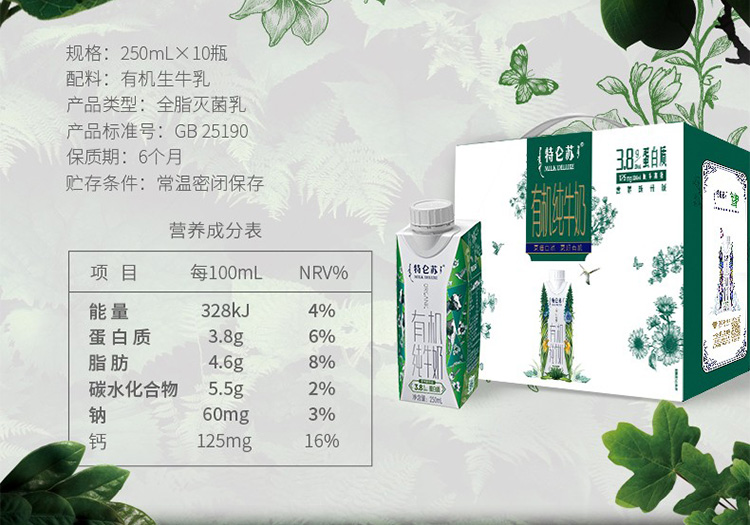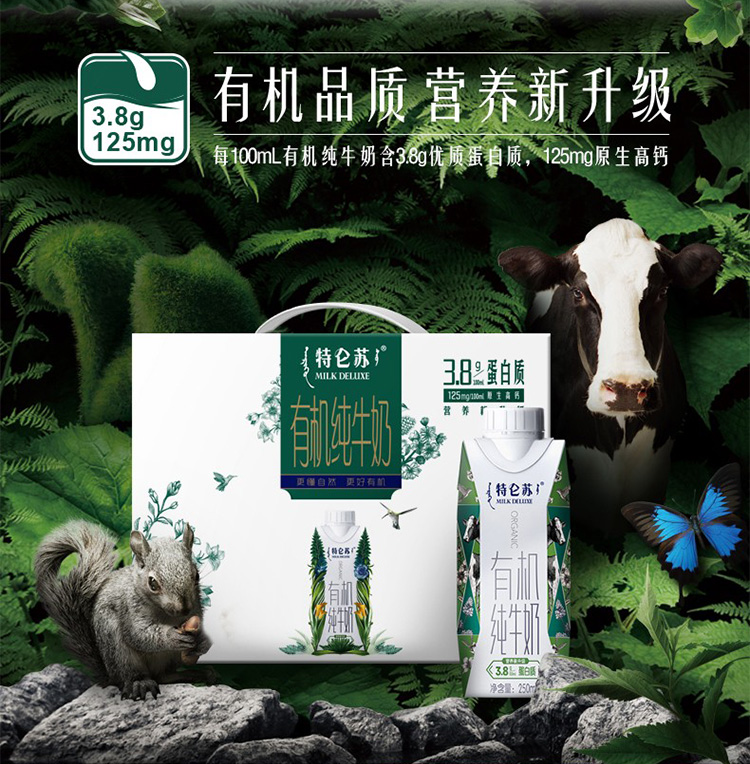 商品名称:蒙牛 特仑苏有机纯牛奶全脂灭菌乳利乐梦幻盖250ml×10包高端营养早餐奶