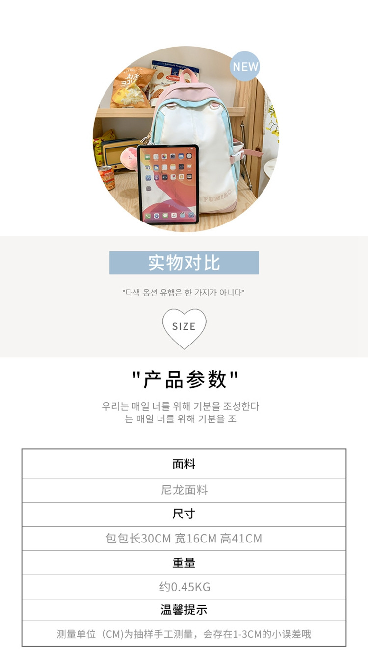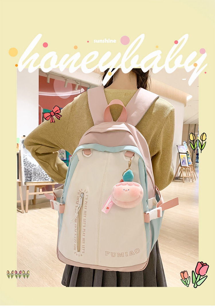 商品名称:彤彤兔 日系校园大学生书包书包简约高颜值百搭双肩包ins撞色软妹少女背包