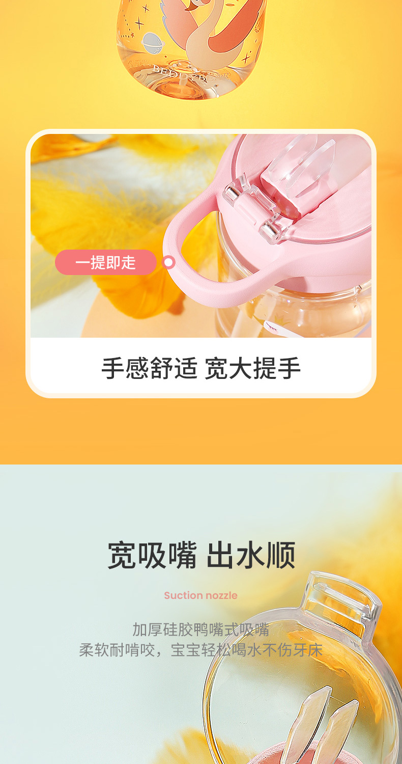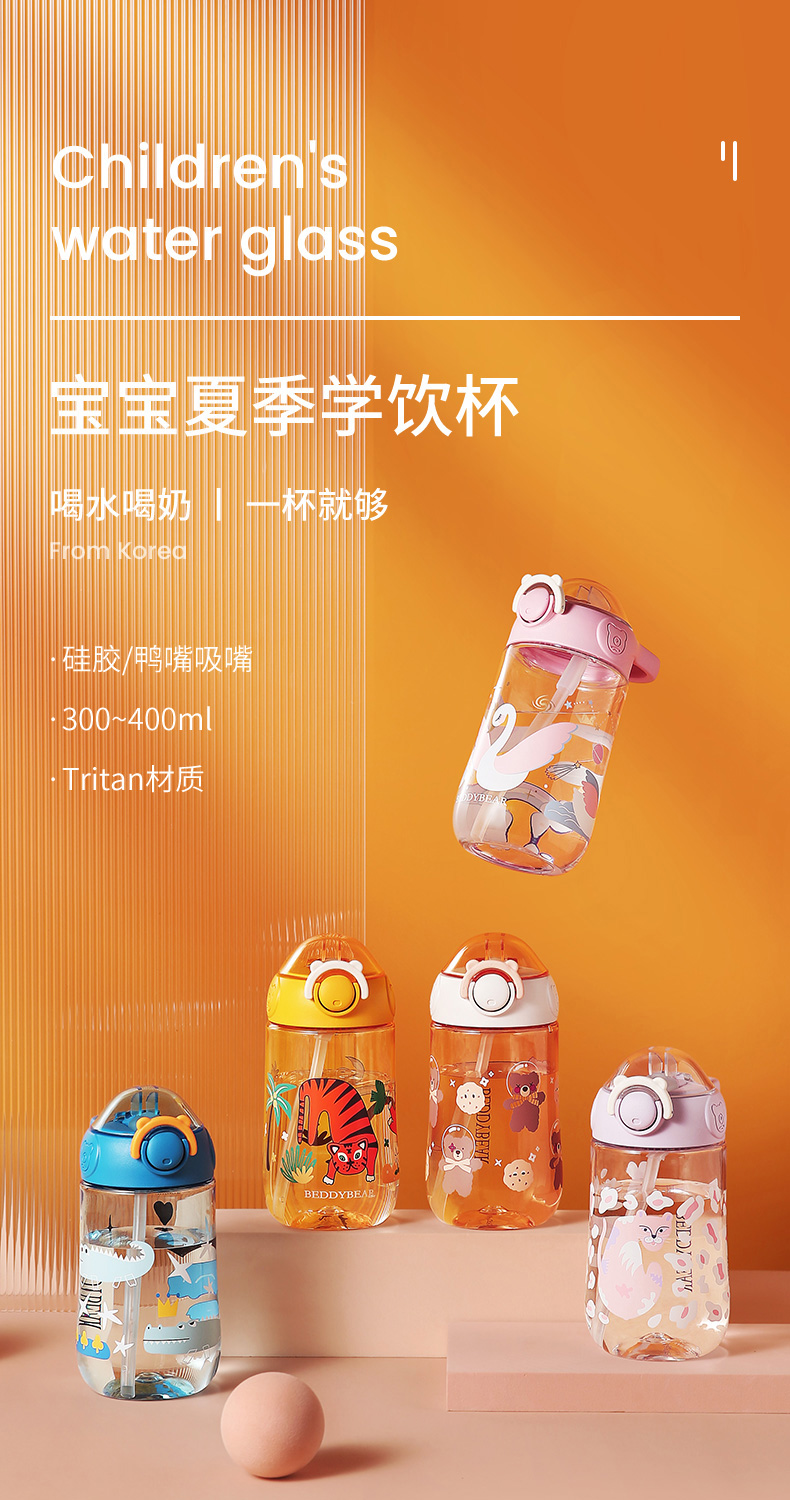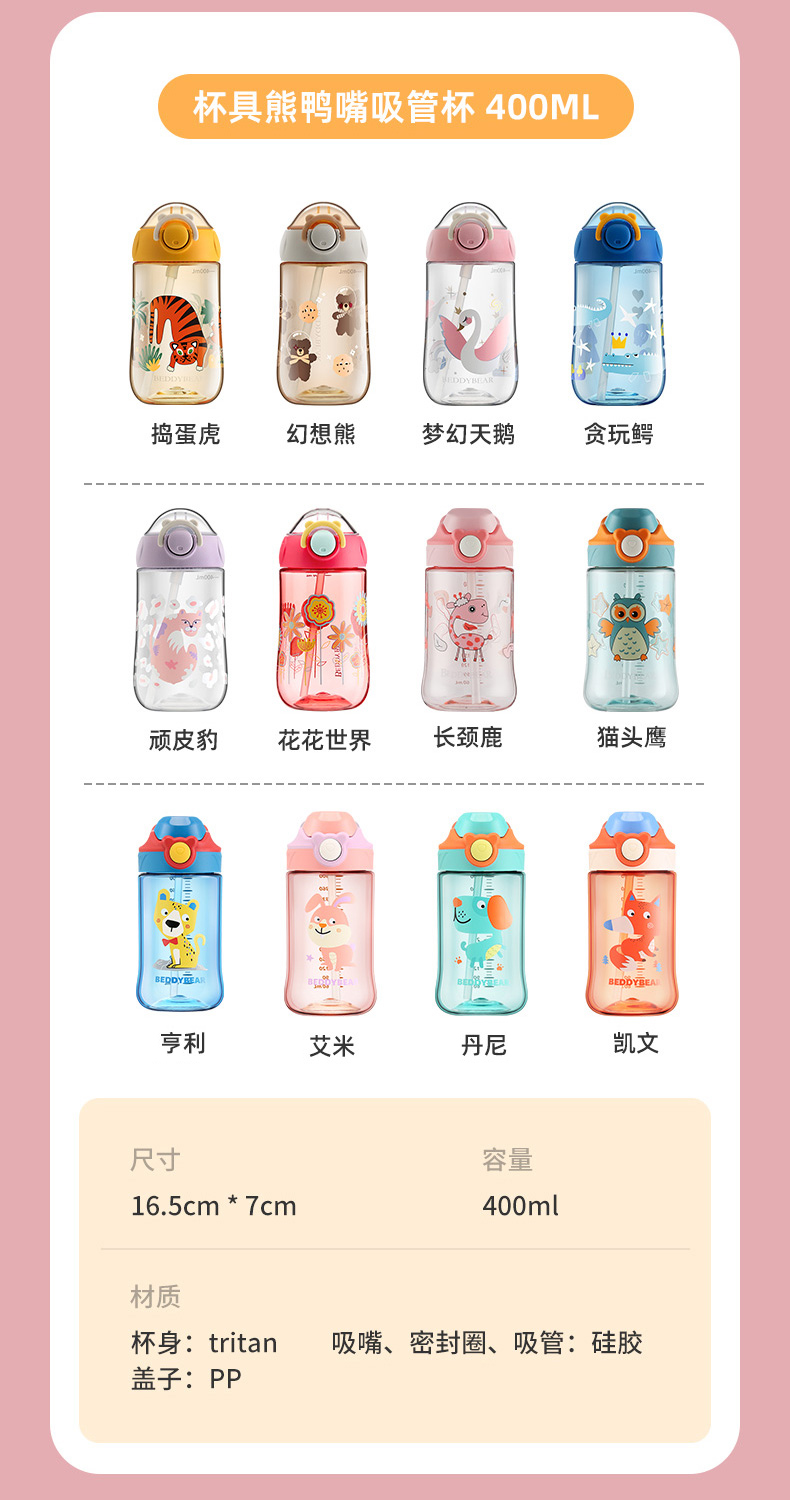 商品名称:【品牌秒杀】杯具熊儿童带提手宝宝夏季tritan幼儿学饮杯鸭嘴杯喝水杯子 400ml
