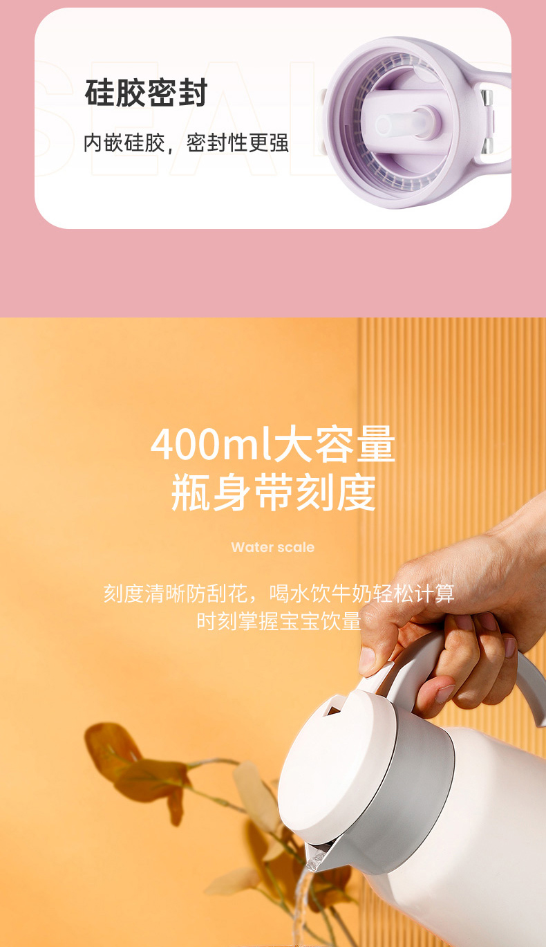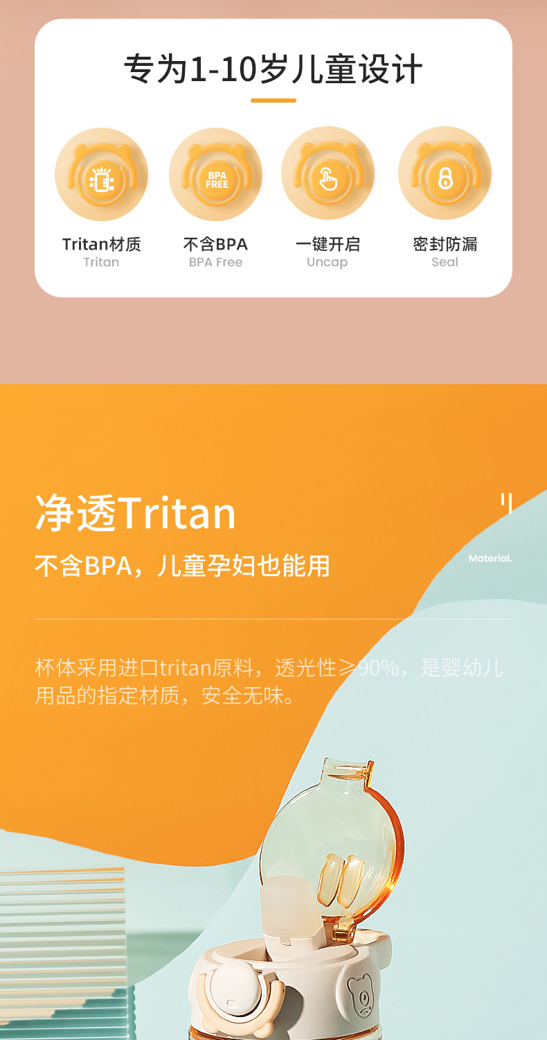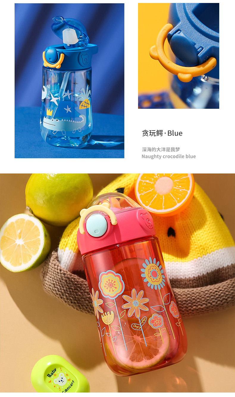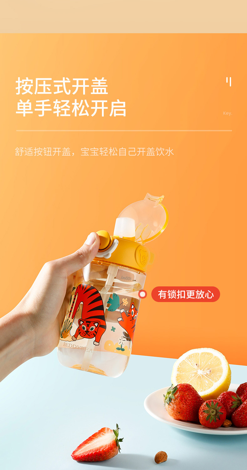 商品名称:【品牌秒杀】杯具熊儿童带提手宝宝夏季tritan幼儿学饮杯鸭嘴杯喝水杯子 400ml