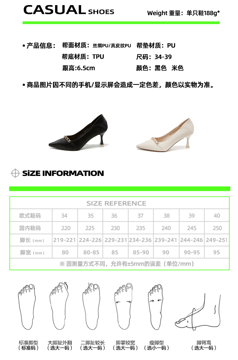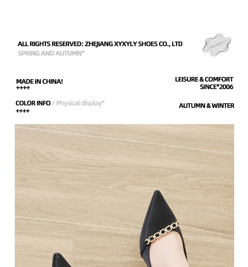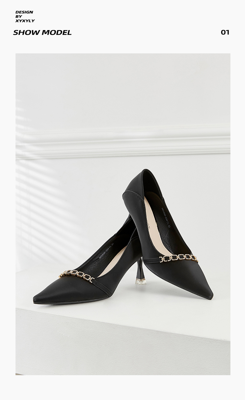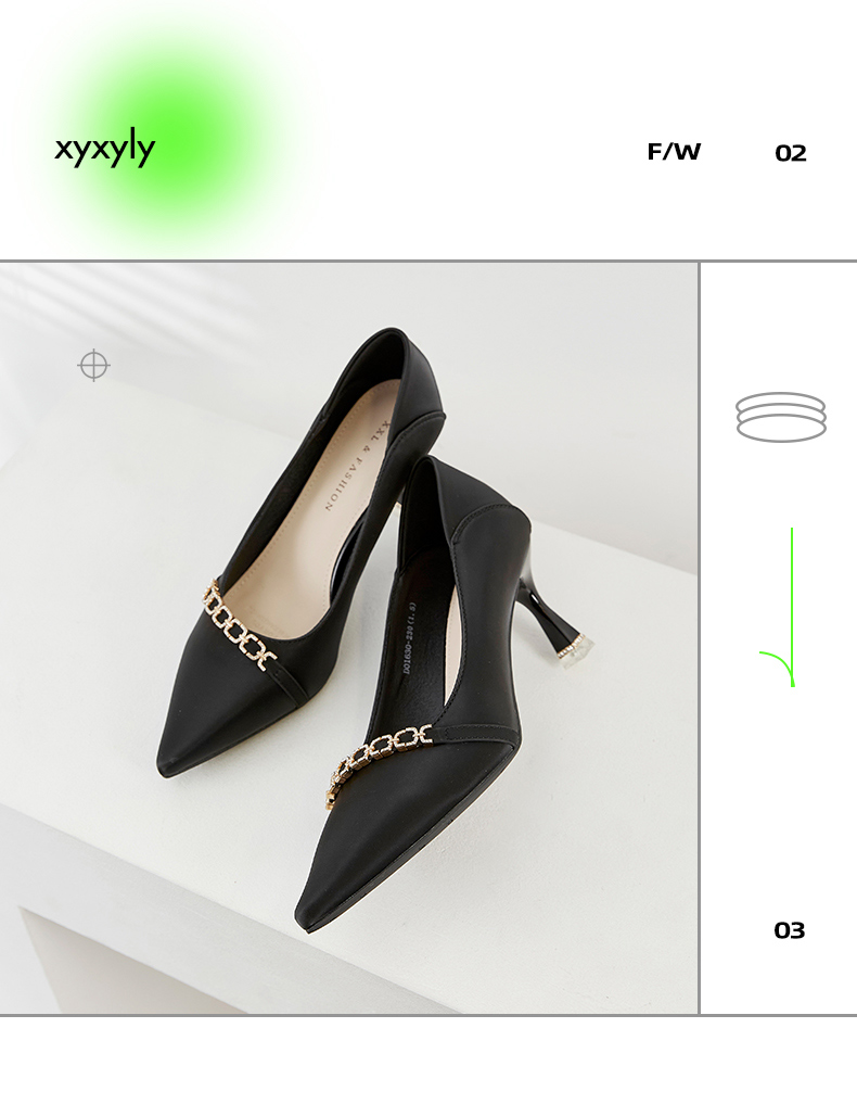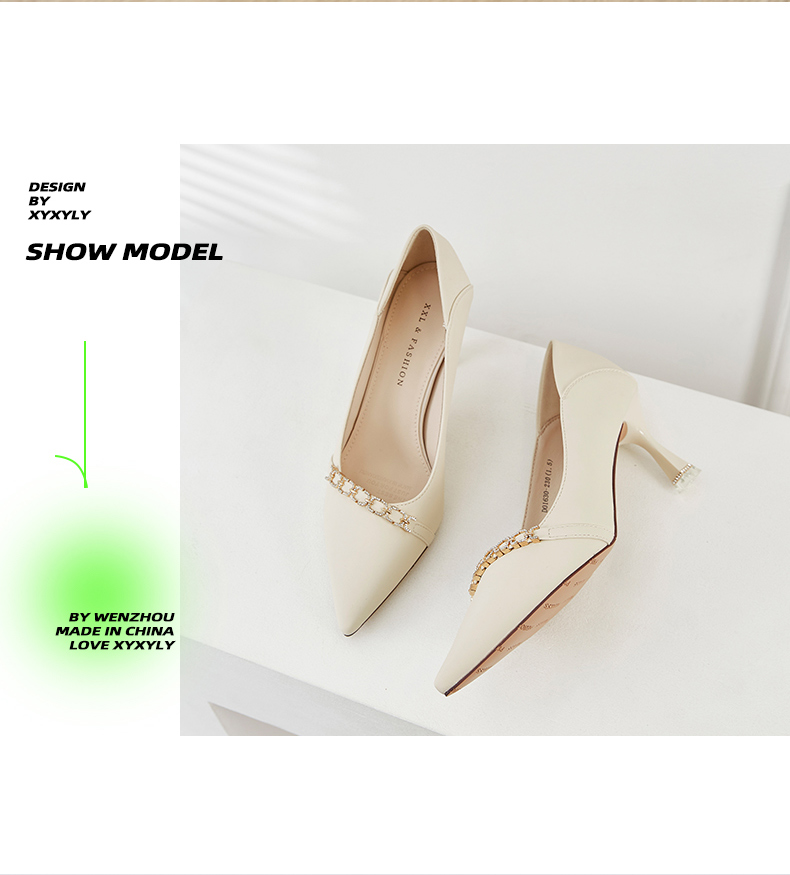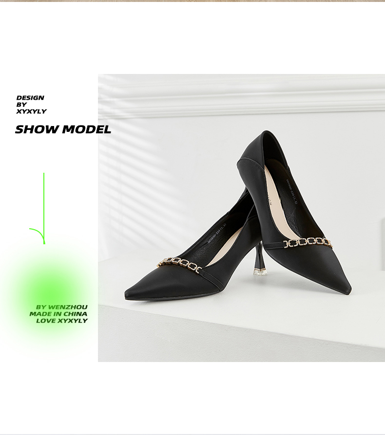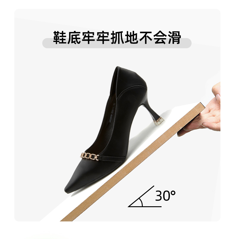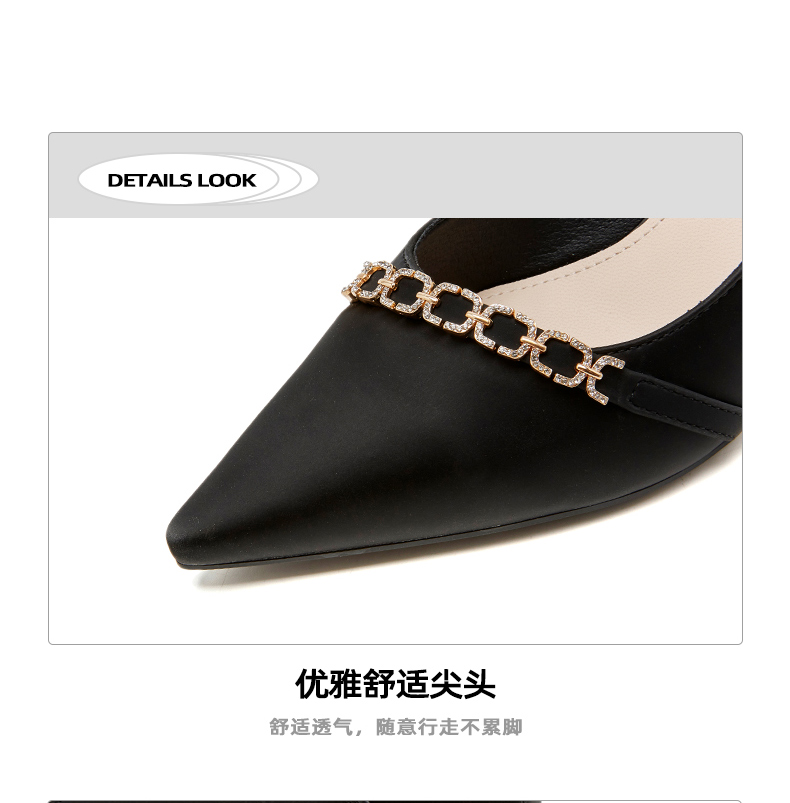 商品名称:香香莉气质尖头水钻方扣链条细高跟单鞋通勤简约款女士高跟鞋浅口单鞋
