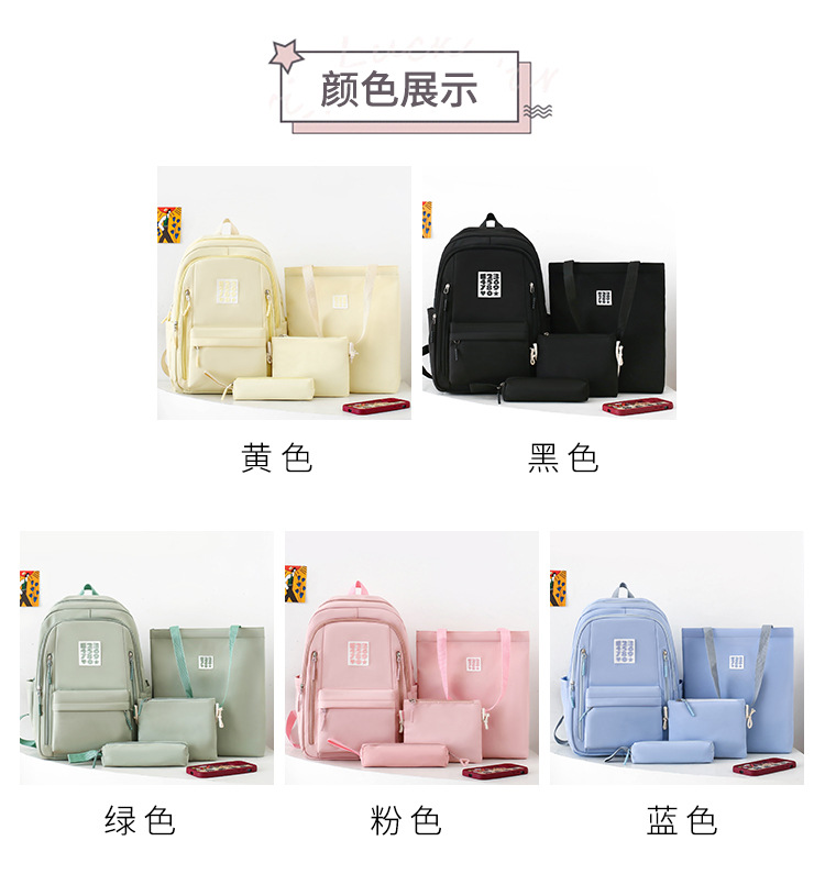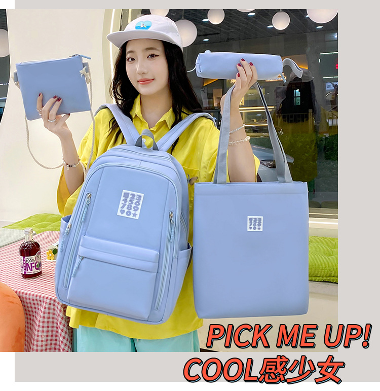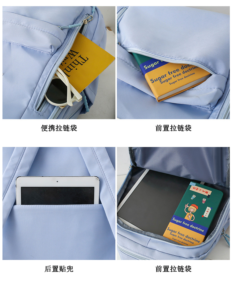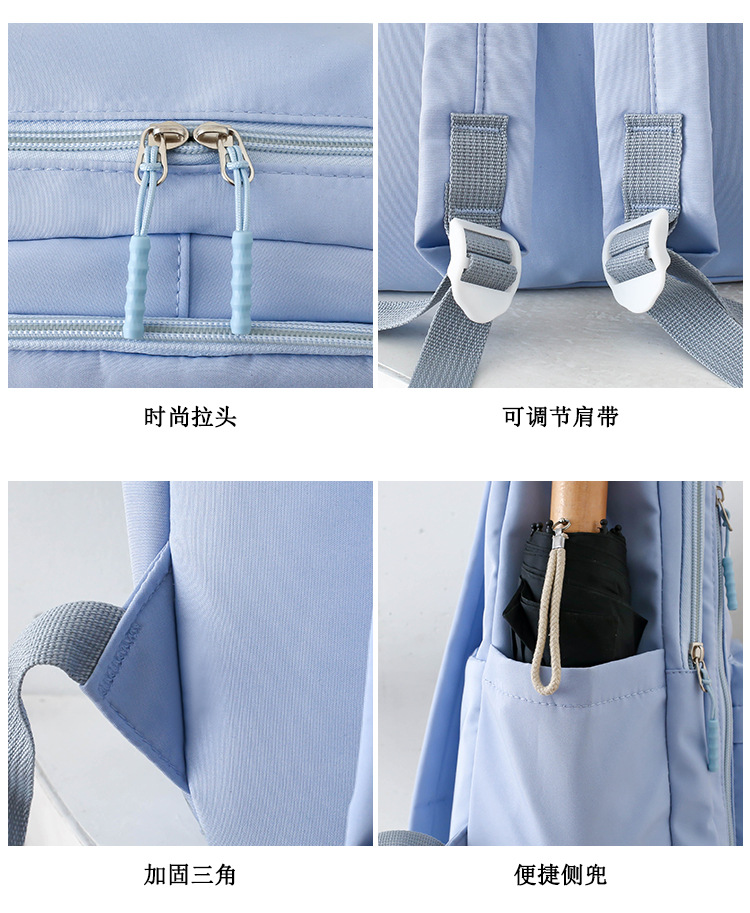 商品名称:彤彤兔 校园大学生书包四件套书包女生韩版简约纯色双肩包旅行包背包