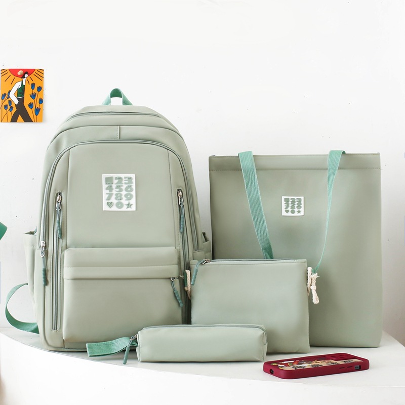 彤彤兔 校园大学生书包四件套书包女生韩版简约纯色双肩包旅行包背包