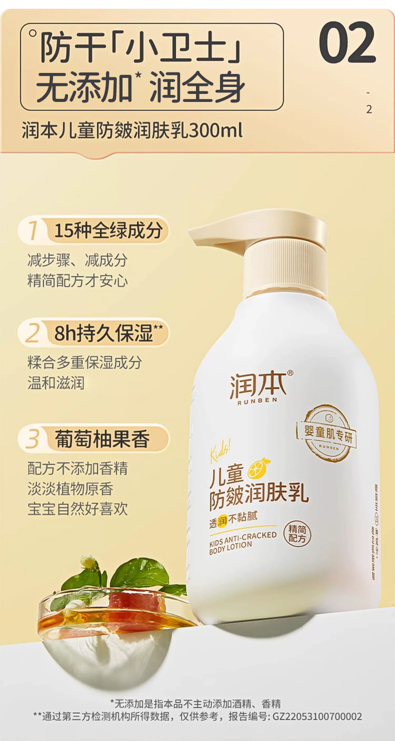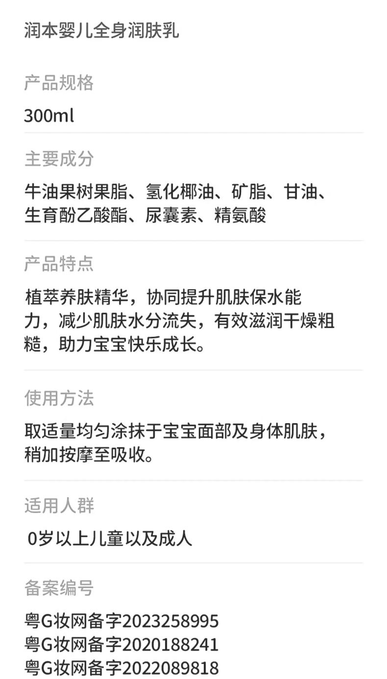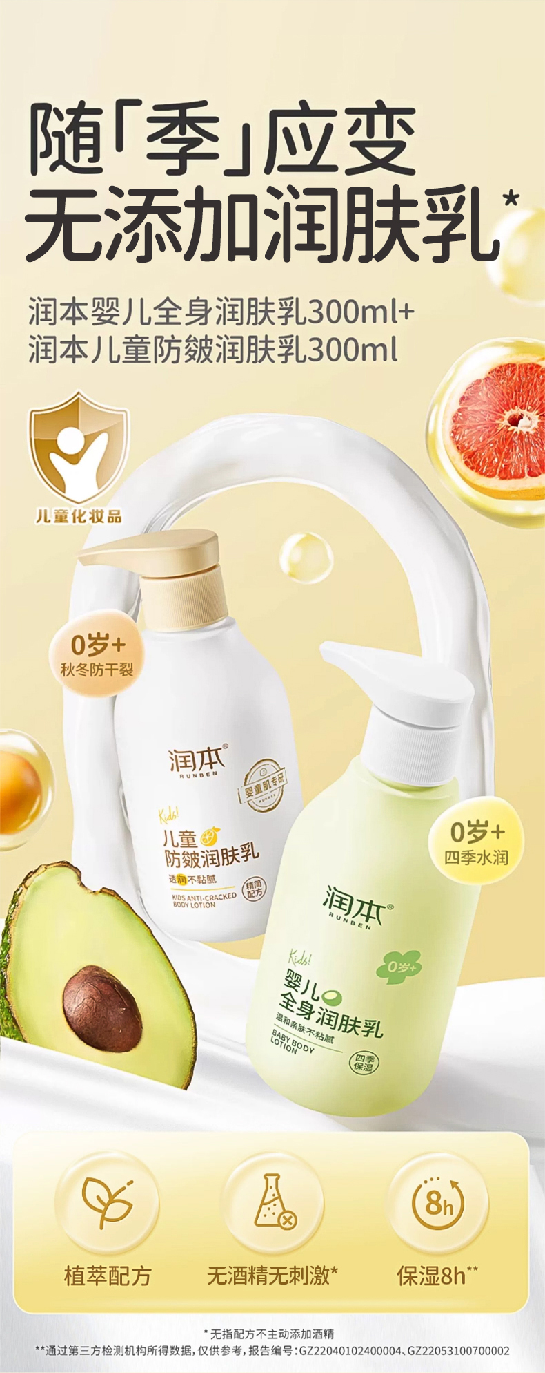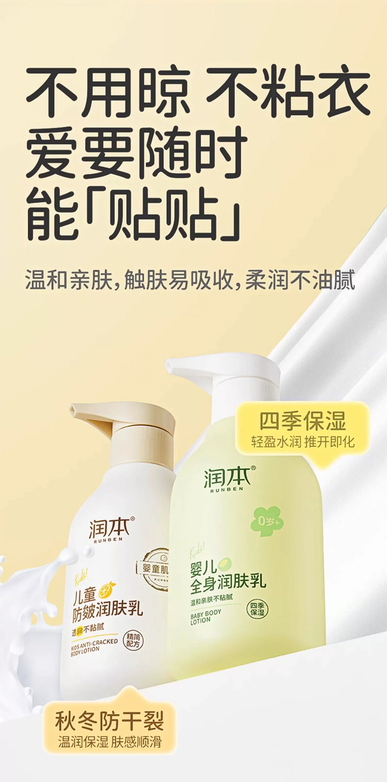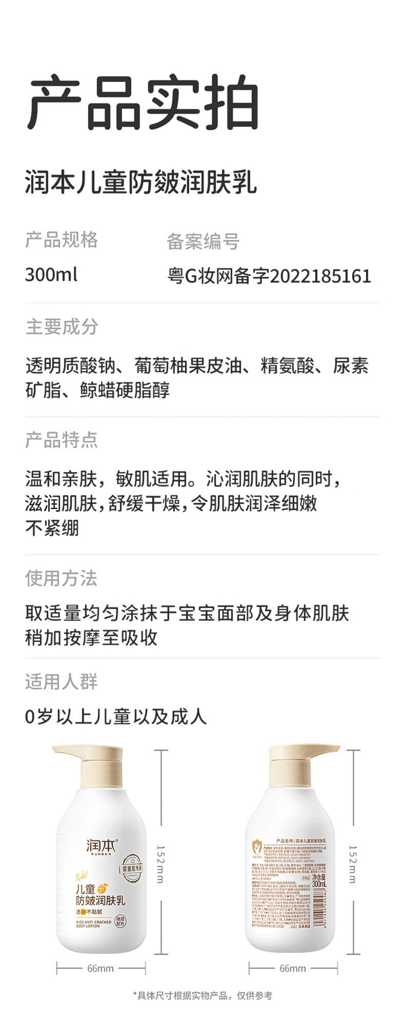 商品名称:【一件起批】润本儿童身体乳300ml止干燥宝宝身体乳保湿滋润婴儿润肤乳秋冬季润肤乳