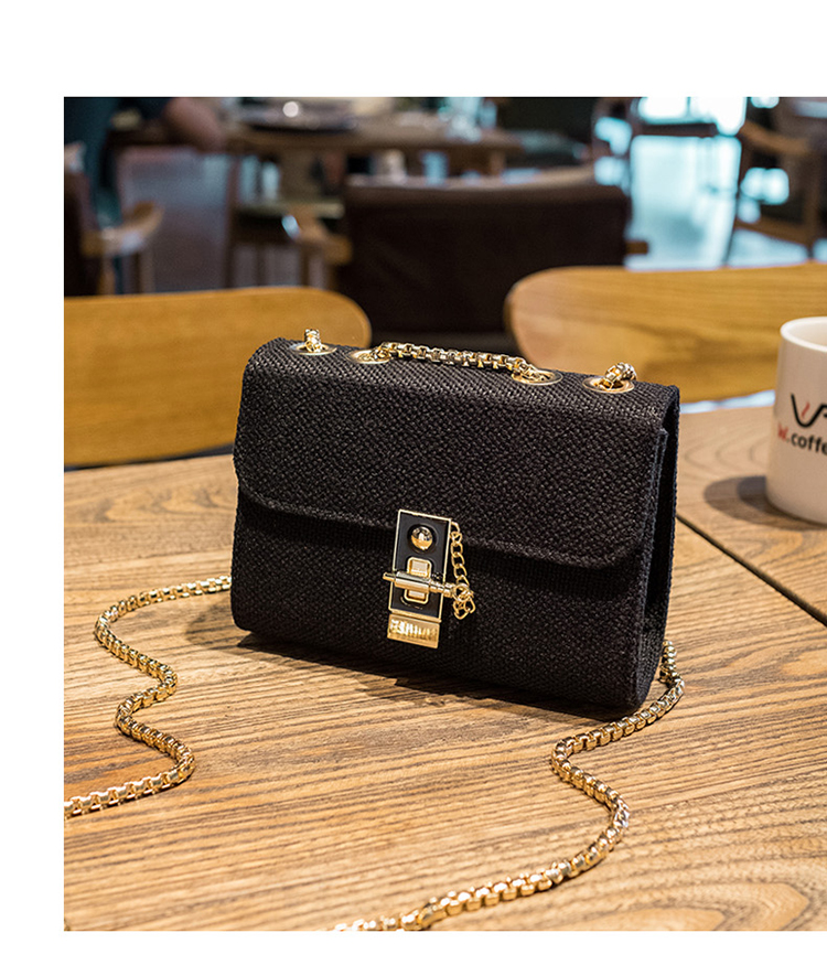 商品名称:彤彤兔 小黑包包女春夏新款潮百搭复古单肩斜挎包帆布链条包