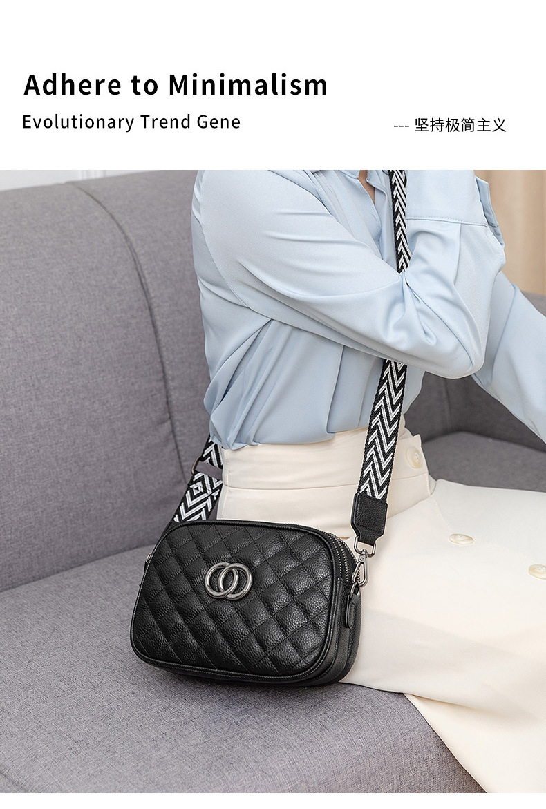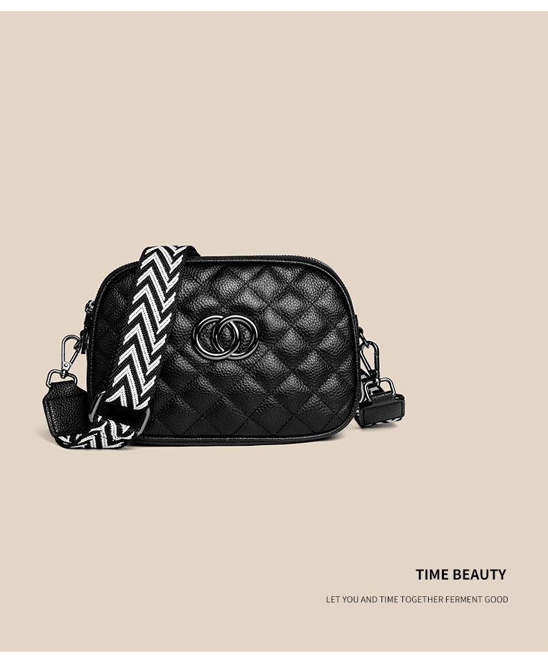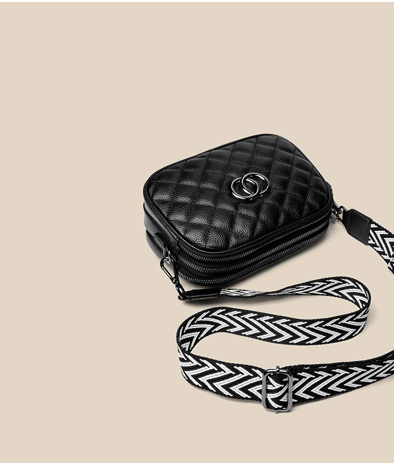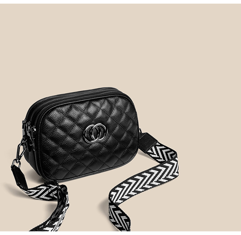 彤彤兔 韩版三层包宽肩带小包包女包小黑包小香风菱格斜挎单肩包