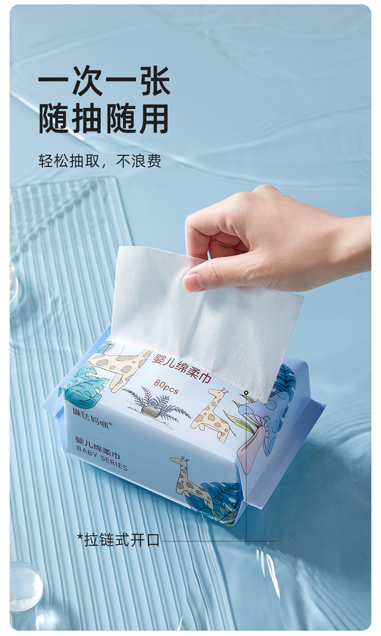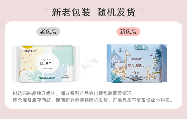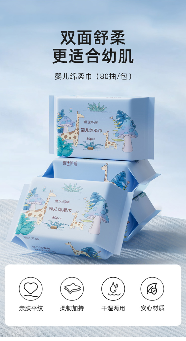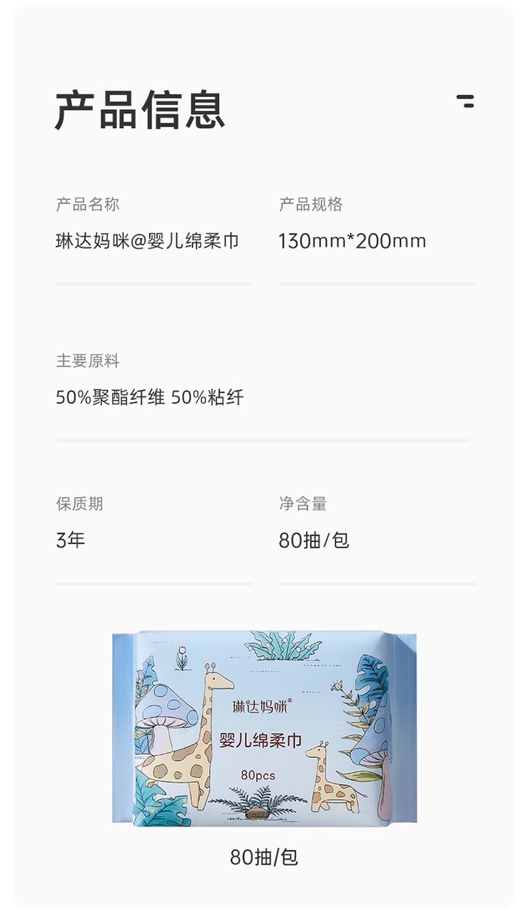 商品名称:琳达妈咪加厚棉柔巾婴儿使用新生宝宝手口干湿纸加大洗脸巾一次性80抽