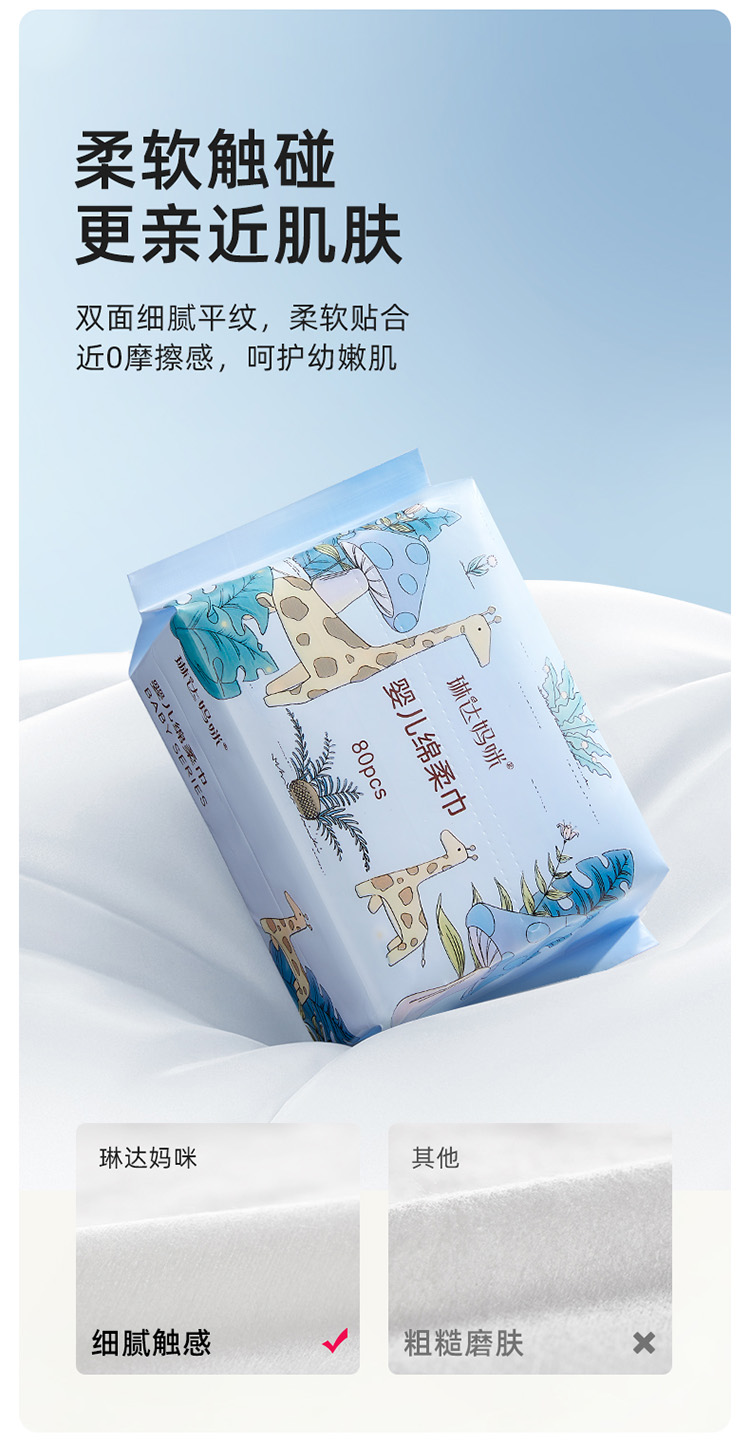 琳达妈咪加厚棉柔巾婴儿使用新生宝宝手口干湿纸加大洗脸巾一次性80抽