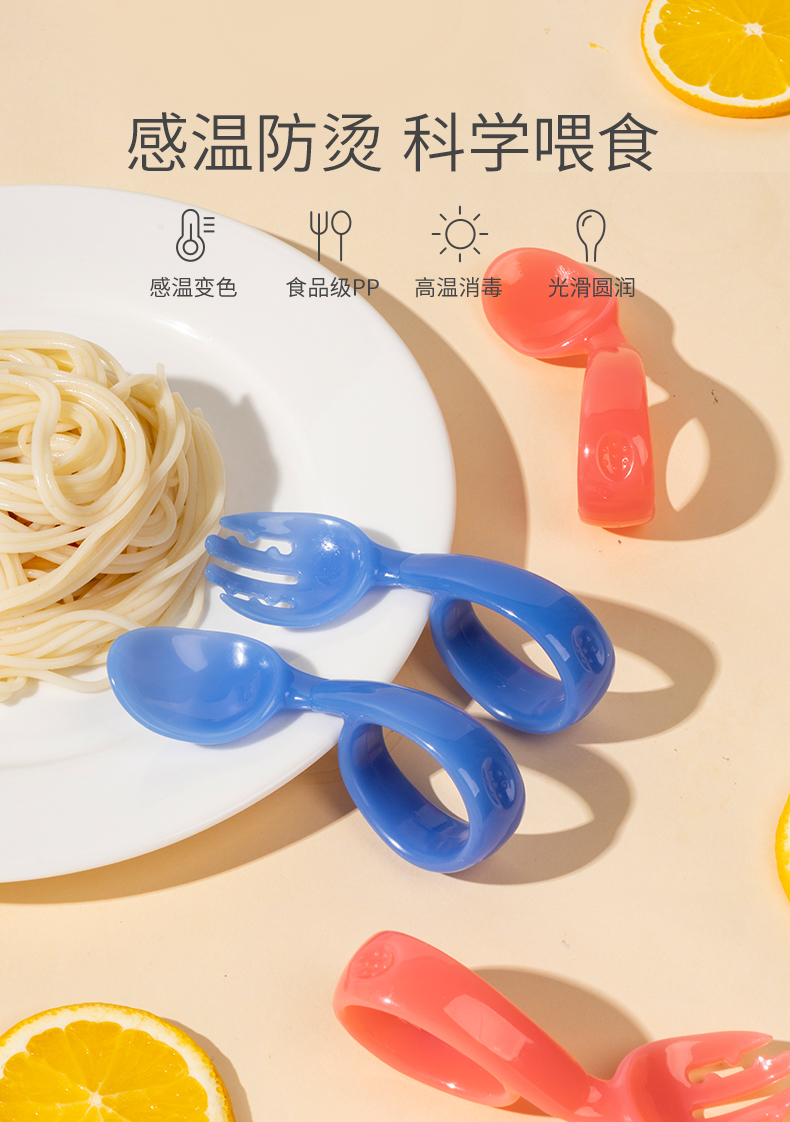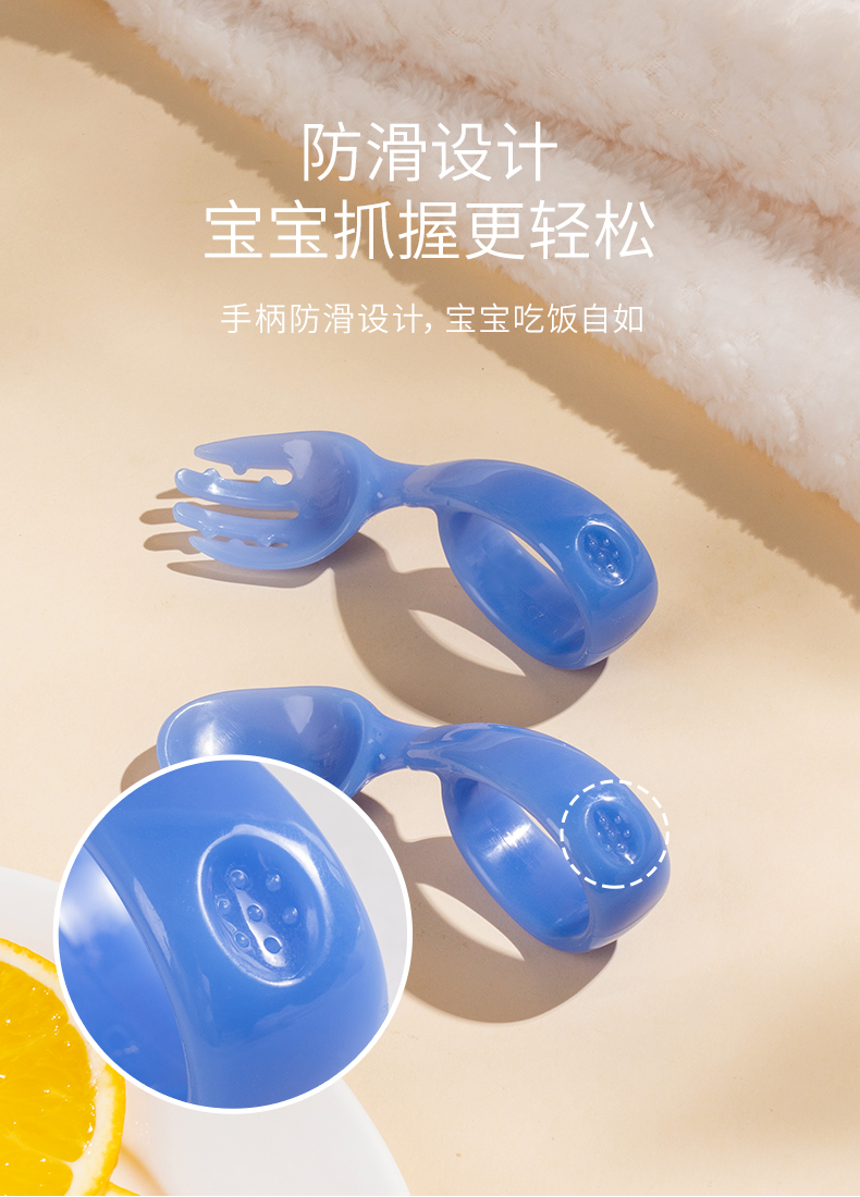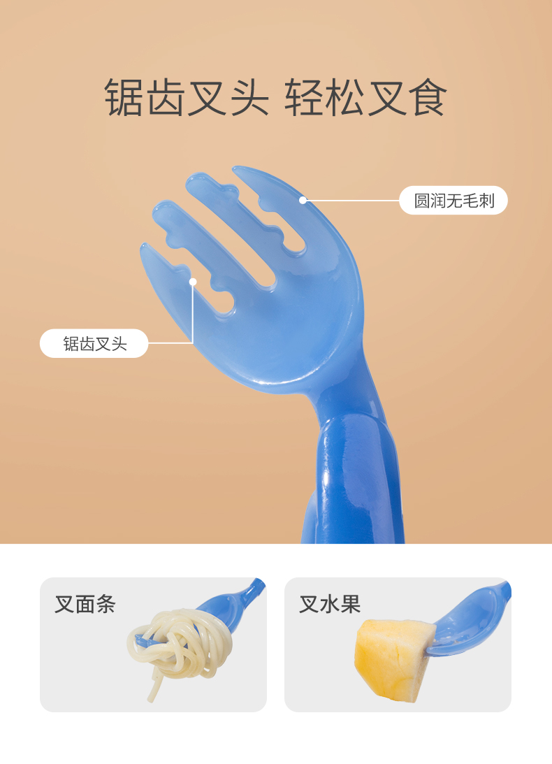 如山宝宝学吃饭训练勺子弯头学食叉勺婴儿辅食勺练习自主进食儿童餐具