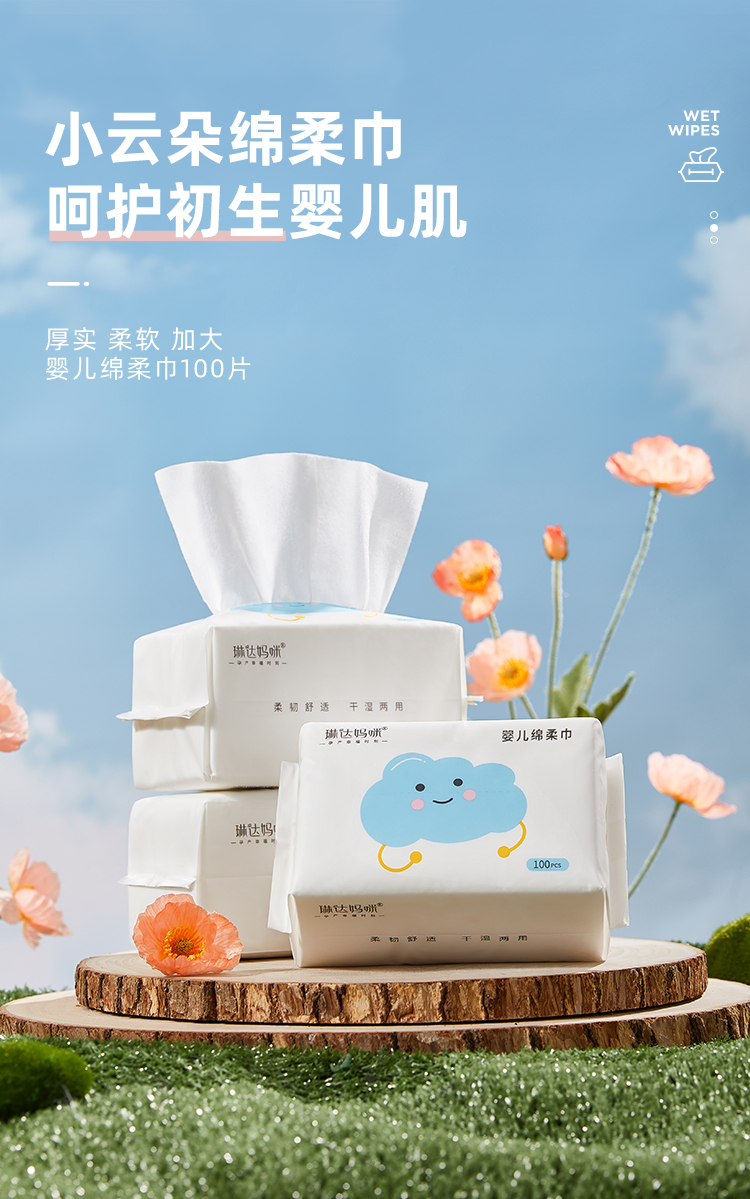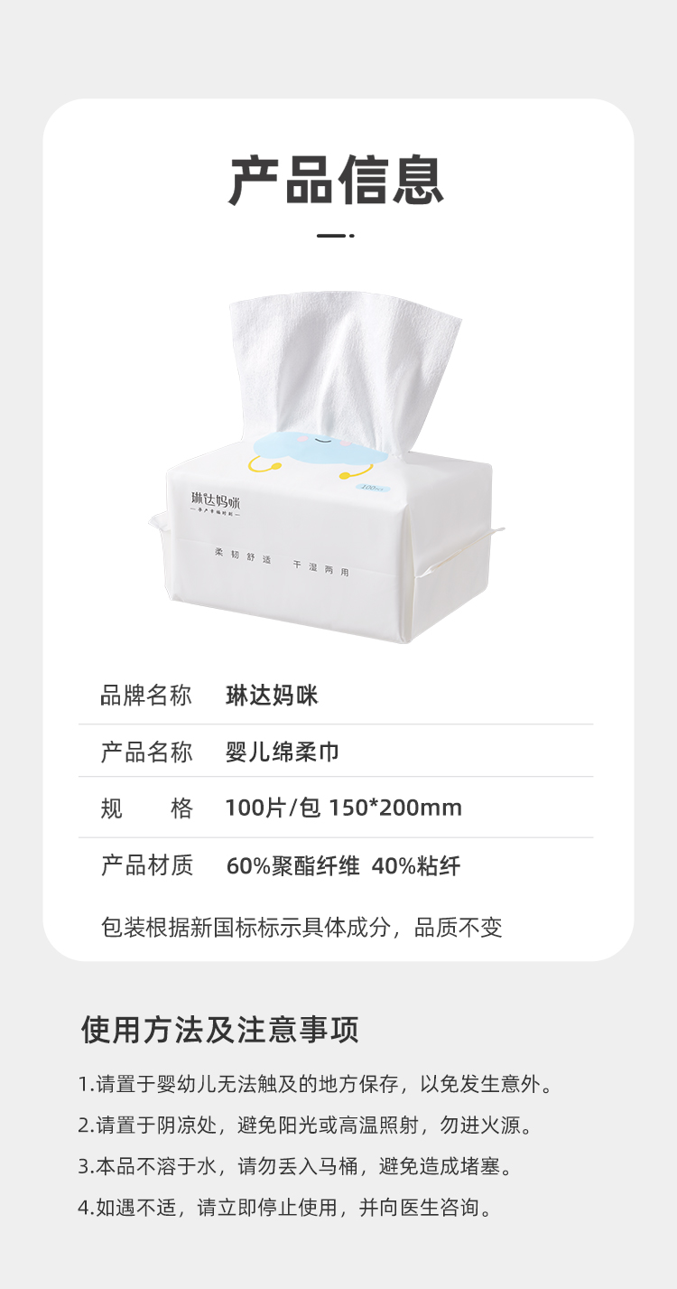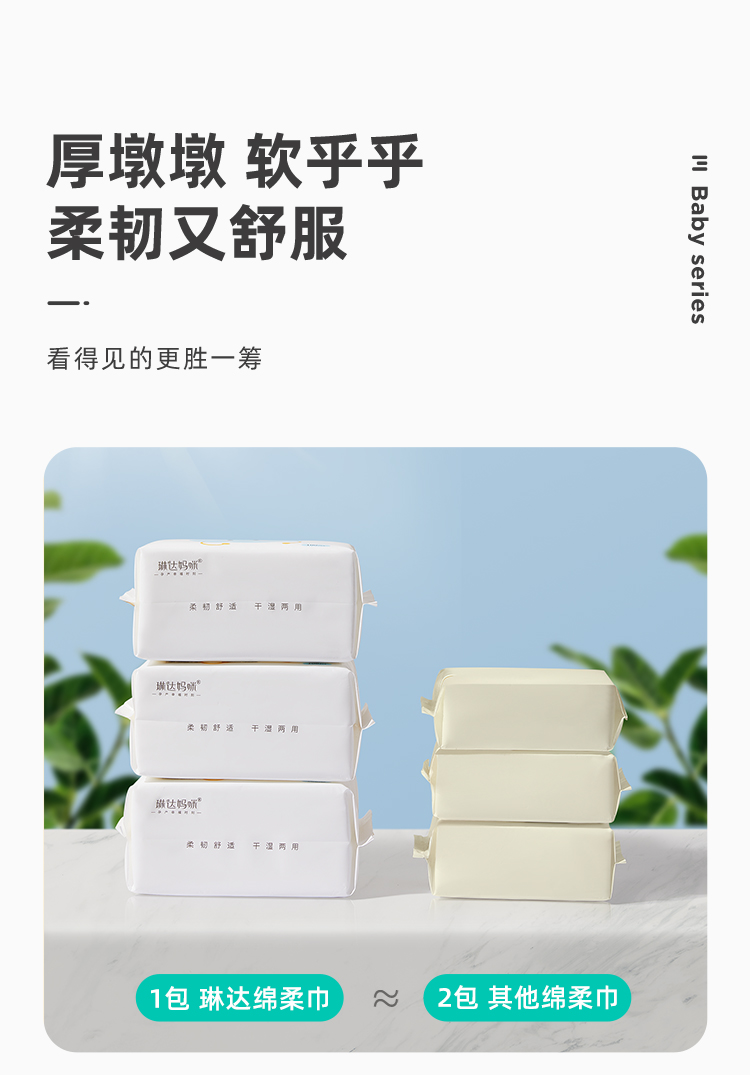 商品名称:【5包】琳达妈咪婴儿棉柔巾100抽5包干湿两用巾新生幼儿宝宝手口干湿纸巾