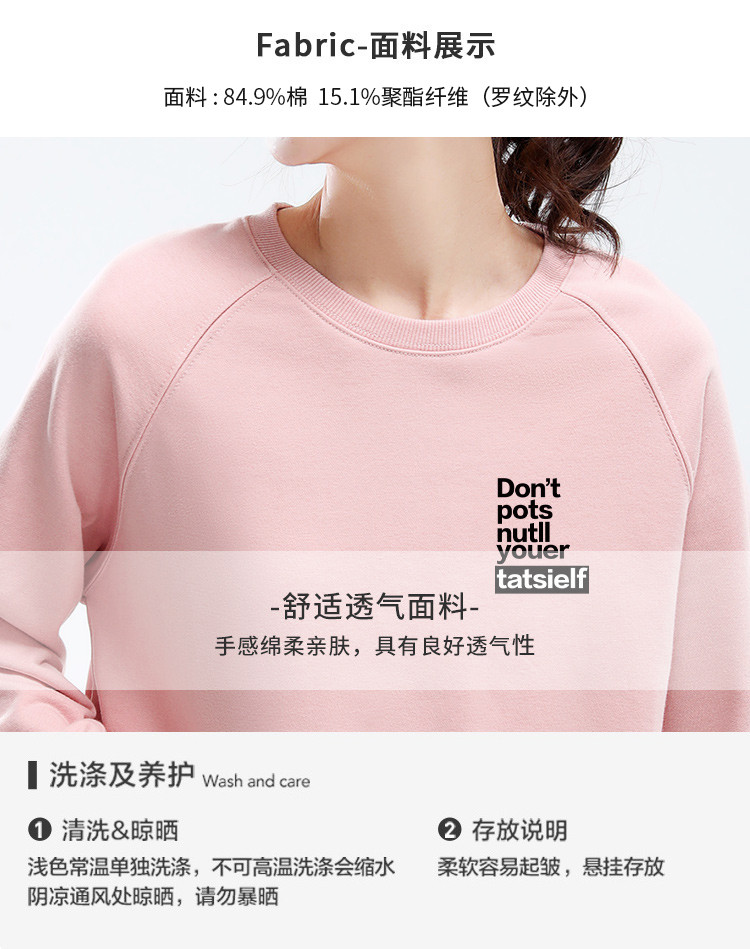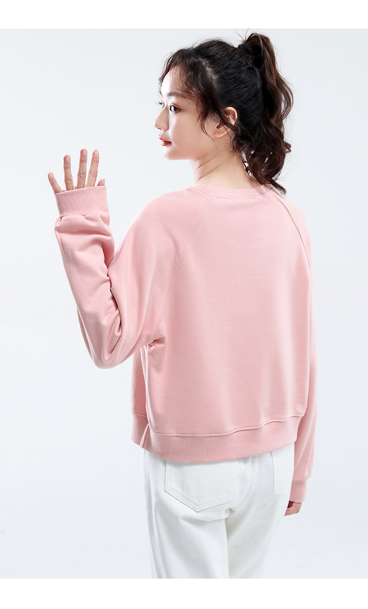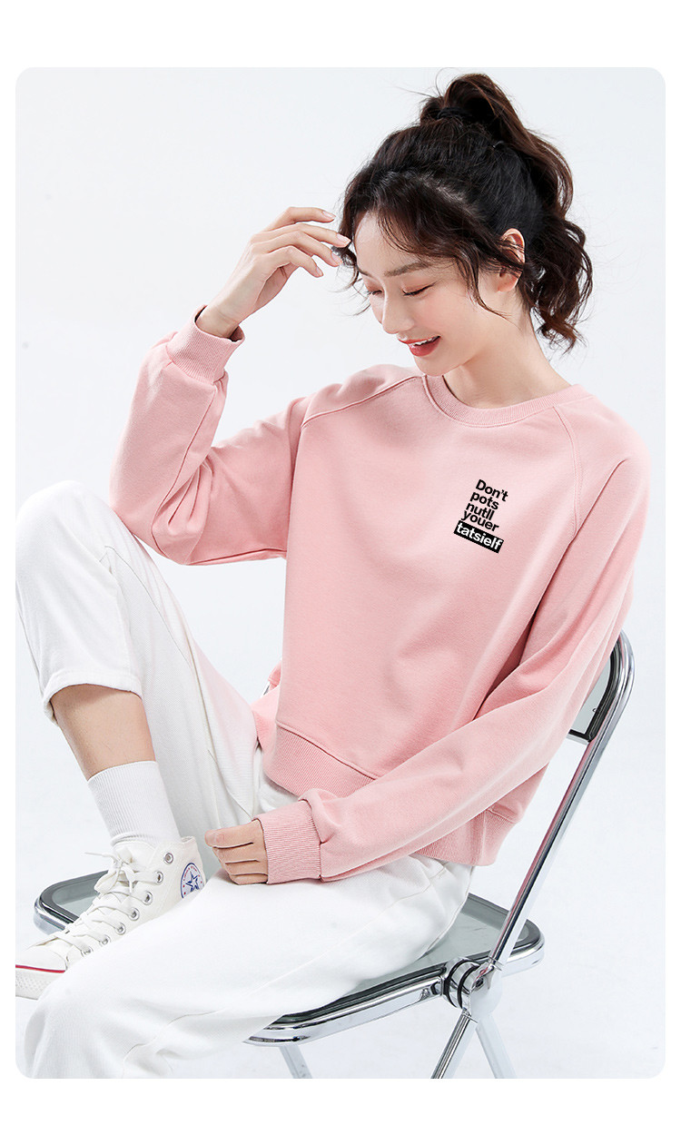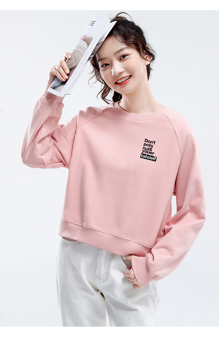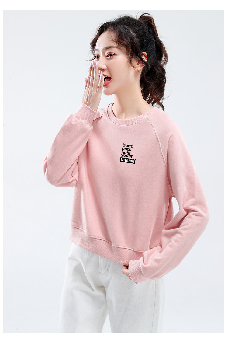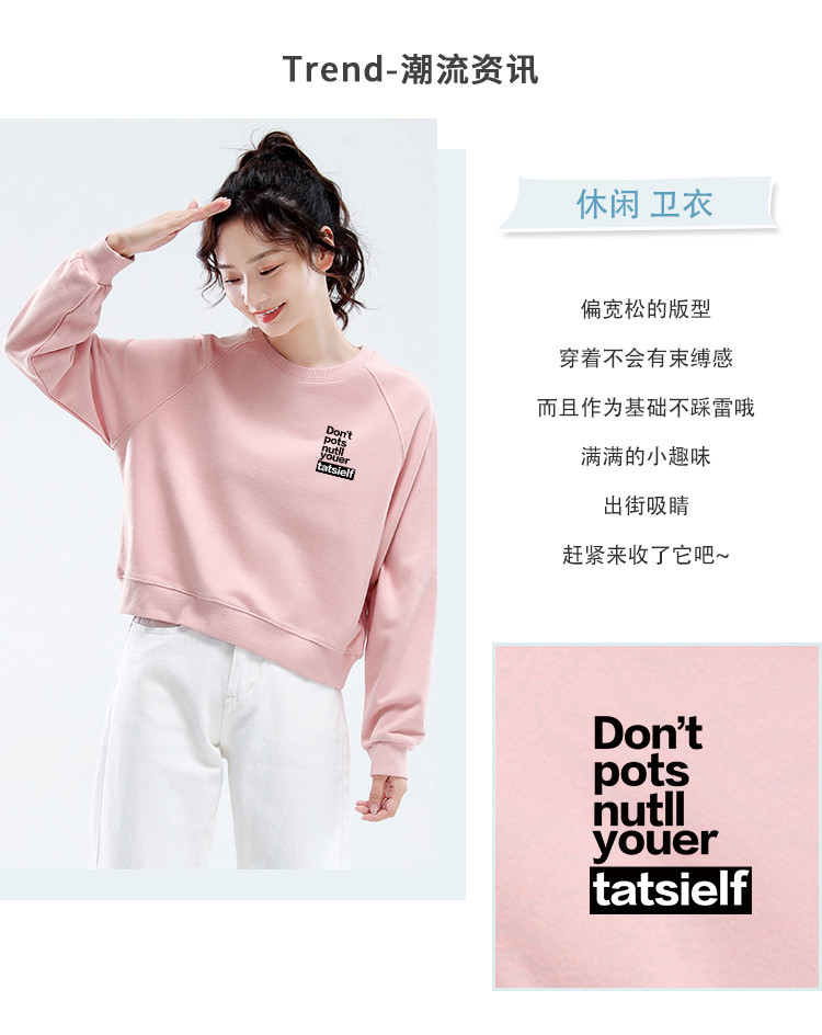 商品名称:米子旗春秋款女式卫衣外套字母印花百搭圆领长袖短款上衣女 861914