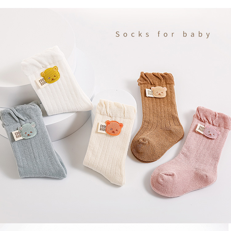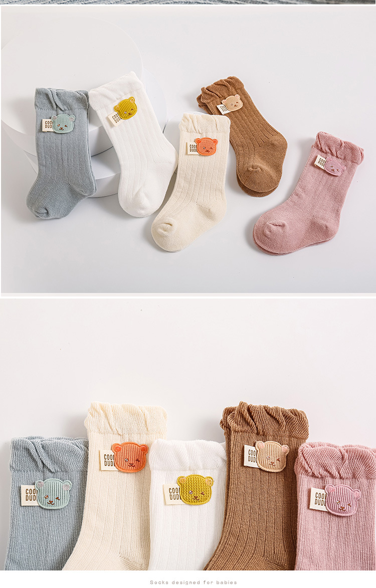 婴儿袜子a类精梳棉儿童袜 可爱卡通熊头松口宝宝袜新生中高筒棉袜