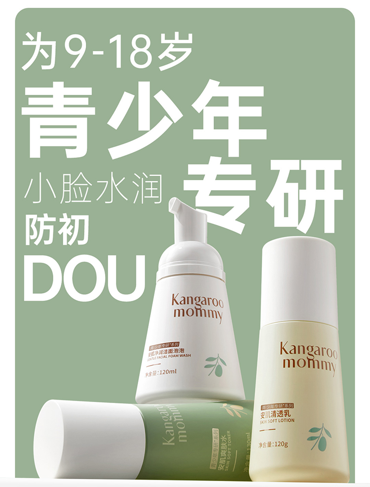 【青少年护肤品套装】袋鼠妈妈儿童洗面奶男女孩学生党青春期水乳儿童水乳洁面套装