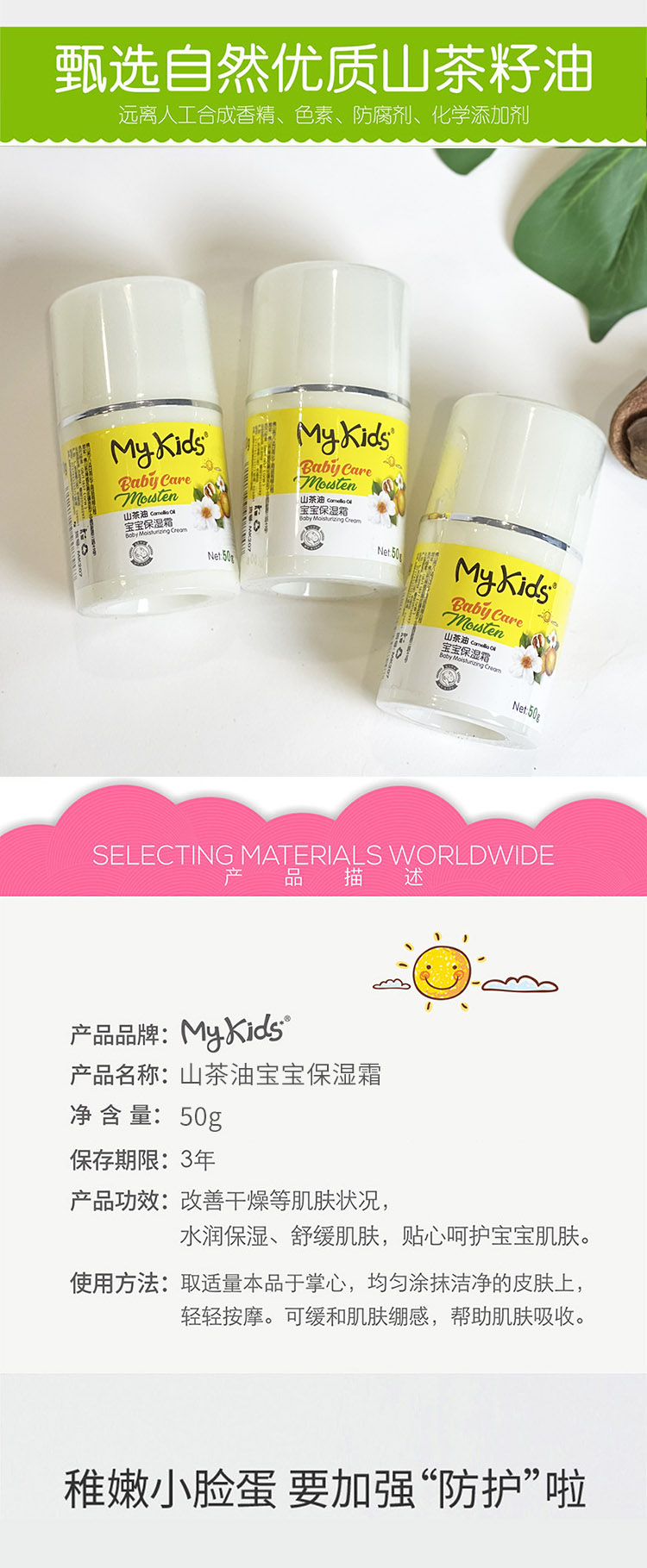 商品名称:Mykids山茶油宝宝保湿霜50g婴儿面霜儿童身体乳润肤乳婴幼儿保湿霜润肤霜保湿护肤乳液