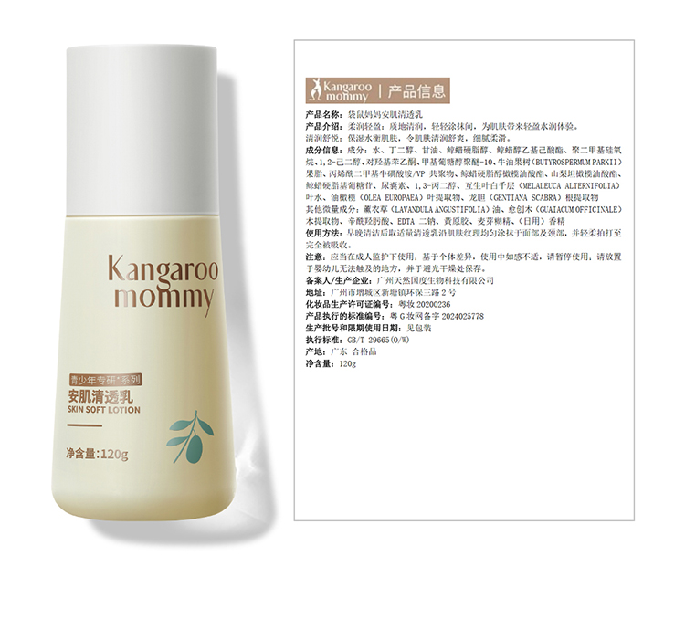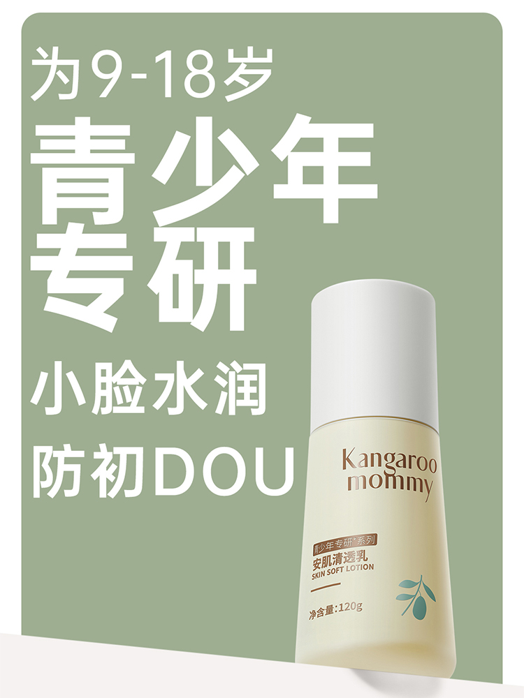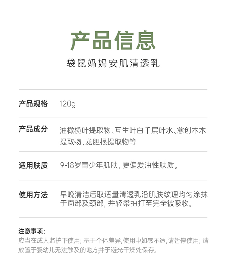 商品名称:【12岁+清润补水】袋鼠妈妈冬季控油细肤祛痘乳液平衡水油男女孩青春期儿童水乳霜120g