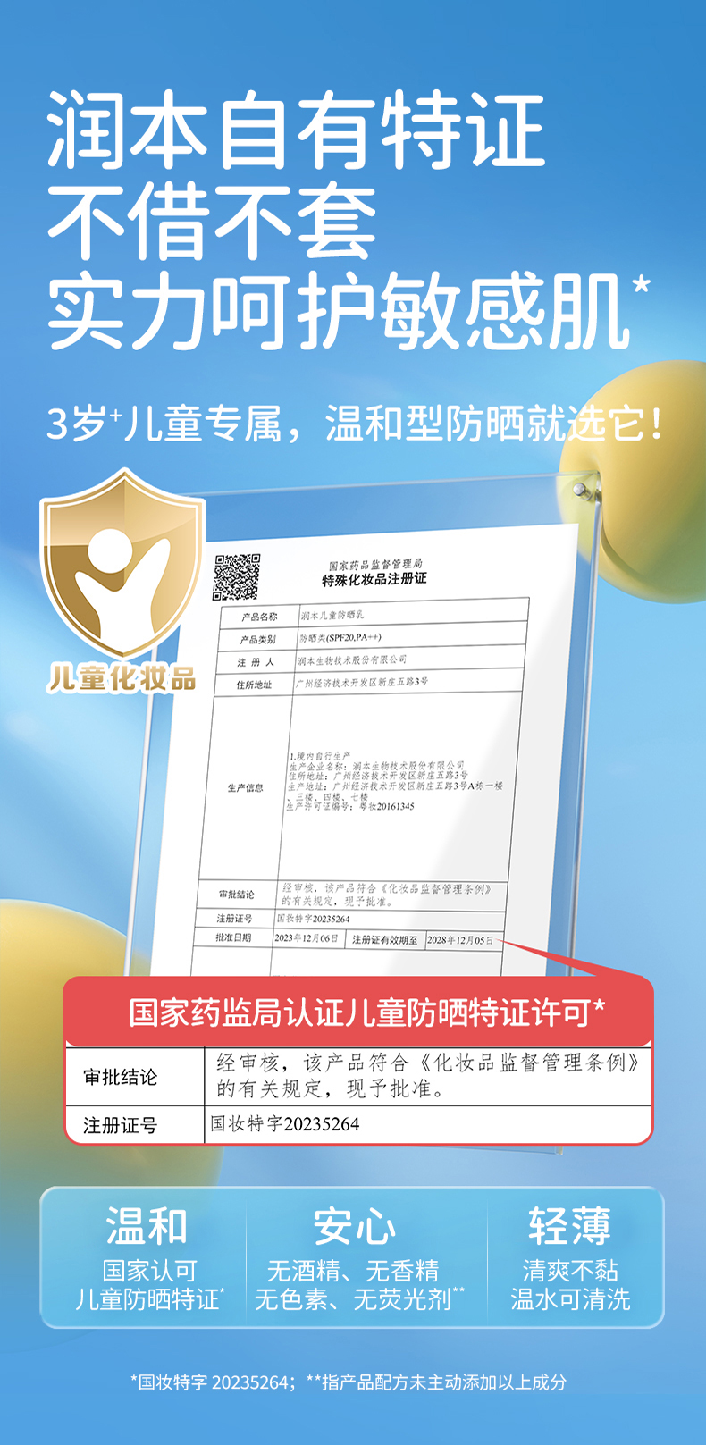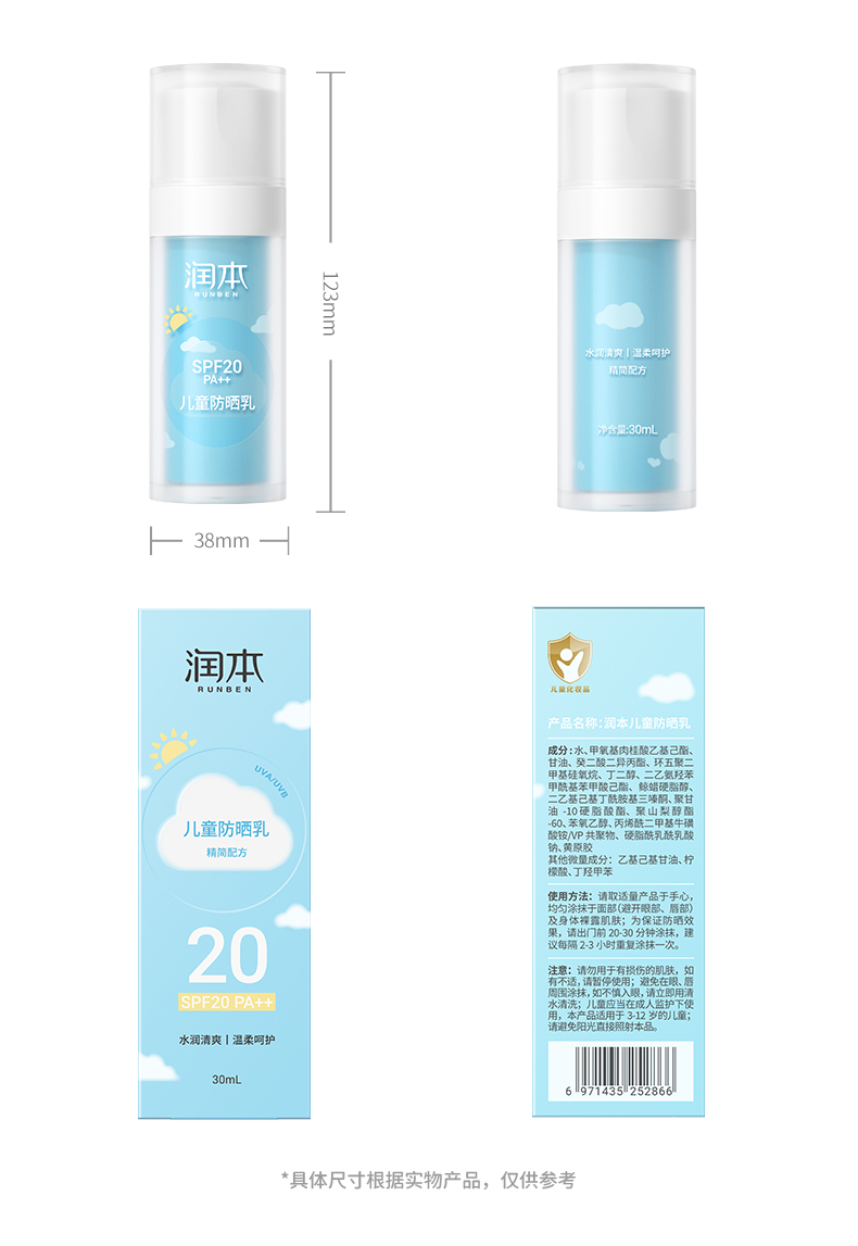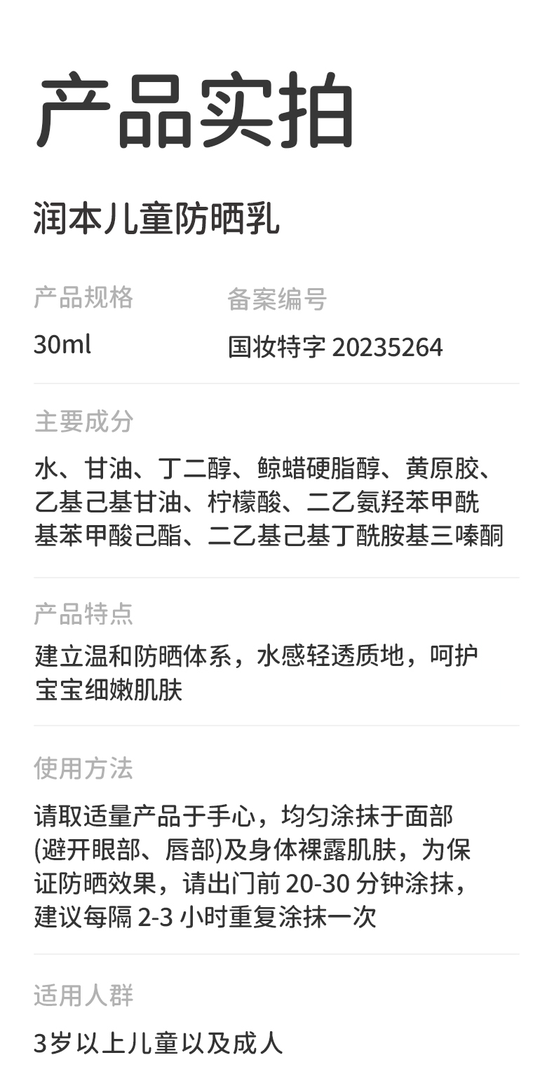 商品名称:【一件起批】润本儿童防晒乳宝宝男女童专用户外隔离紫外线物理防晒乳30ml
