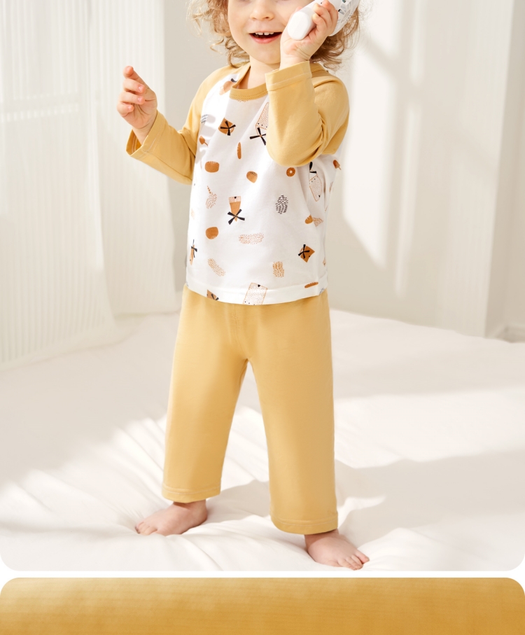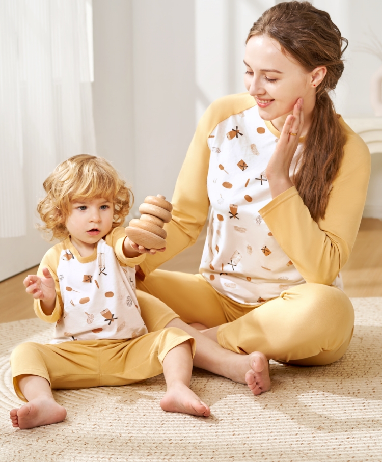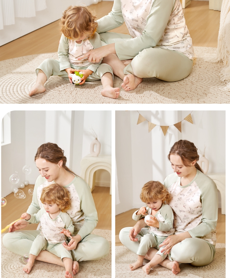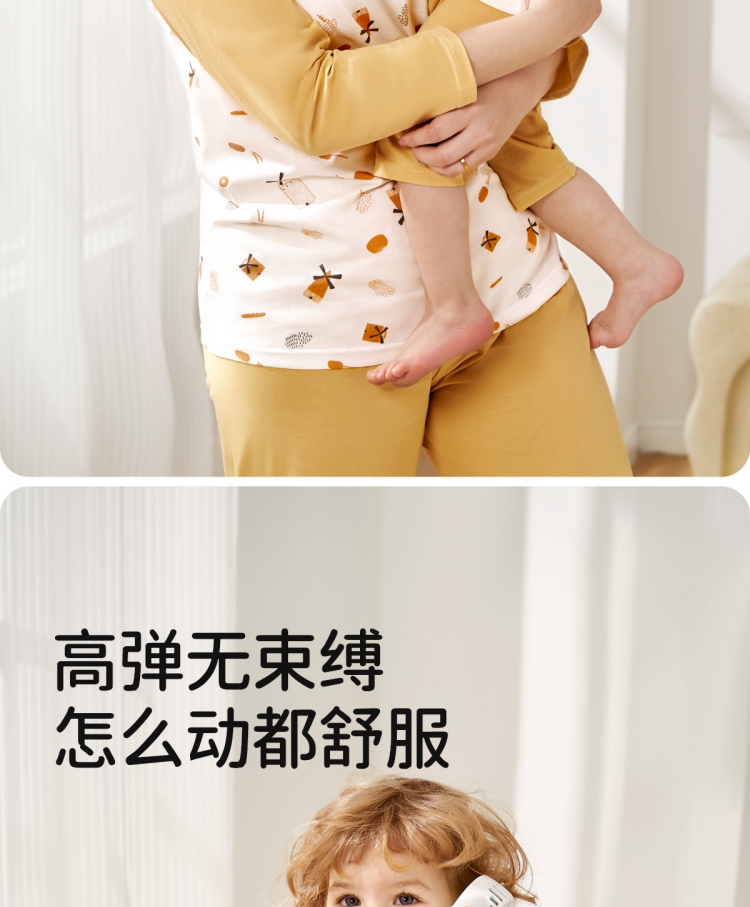 欧孕亲子装儿童家居服七分袖冰丝凉感睡衣男女童宝宝夏季薄款纯棉空调服
