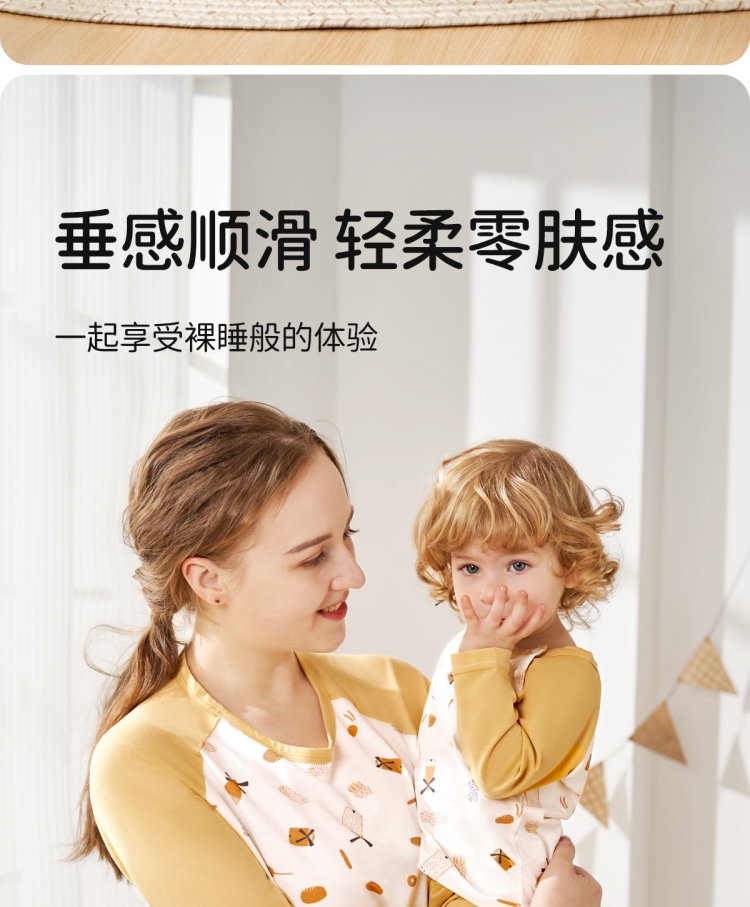 商品名称:欧孕亲子装儿童家居服七分袖冰丝凉感睡衣男女童宝宝夏季薄款纯棉空调服