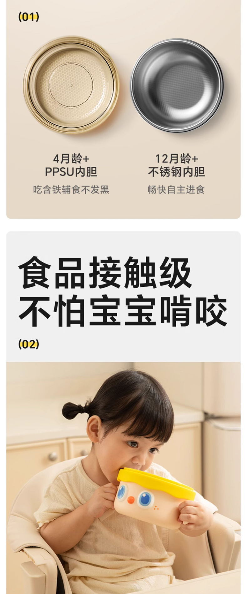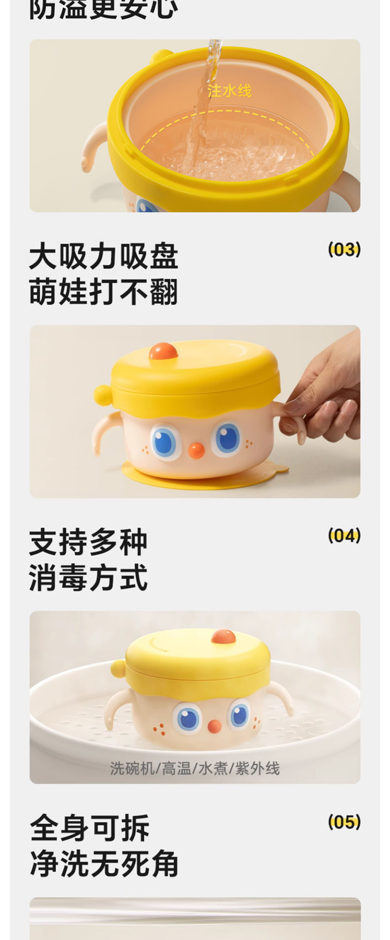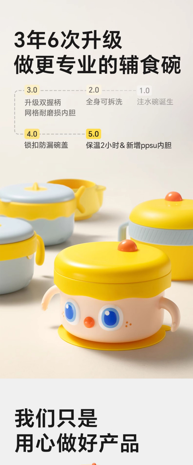 VS皇宠大眼萌注水保温碗不锈钢辅食刻度餐盘学习叉勺好吸汤碗训练筷子米糊碗宝宝餐具