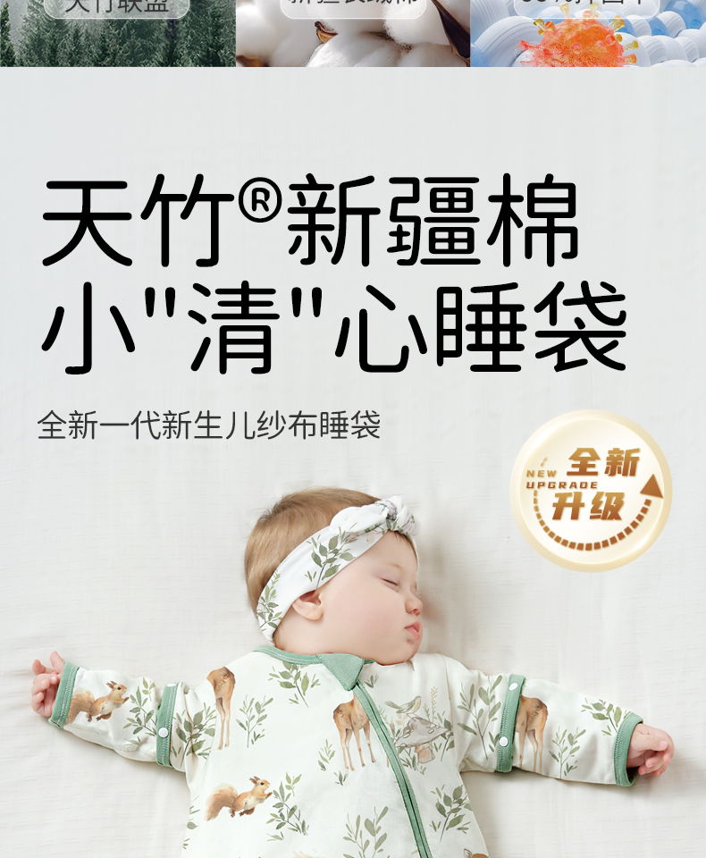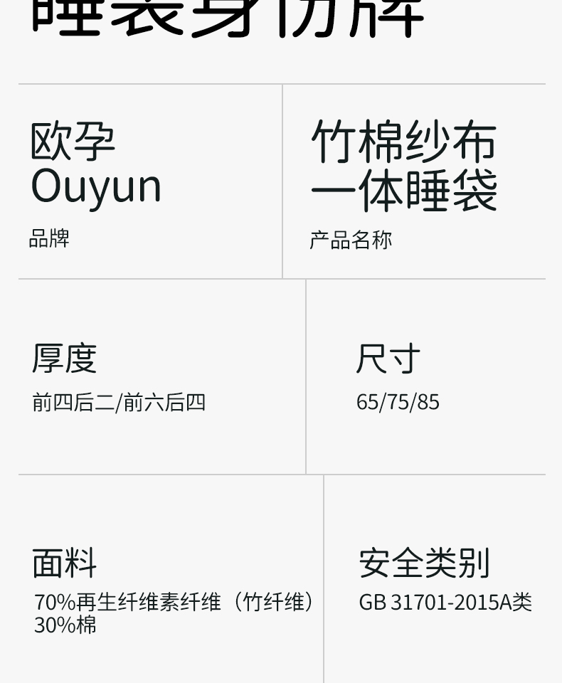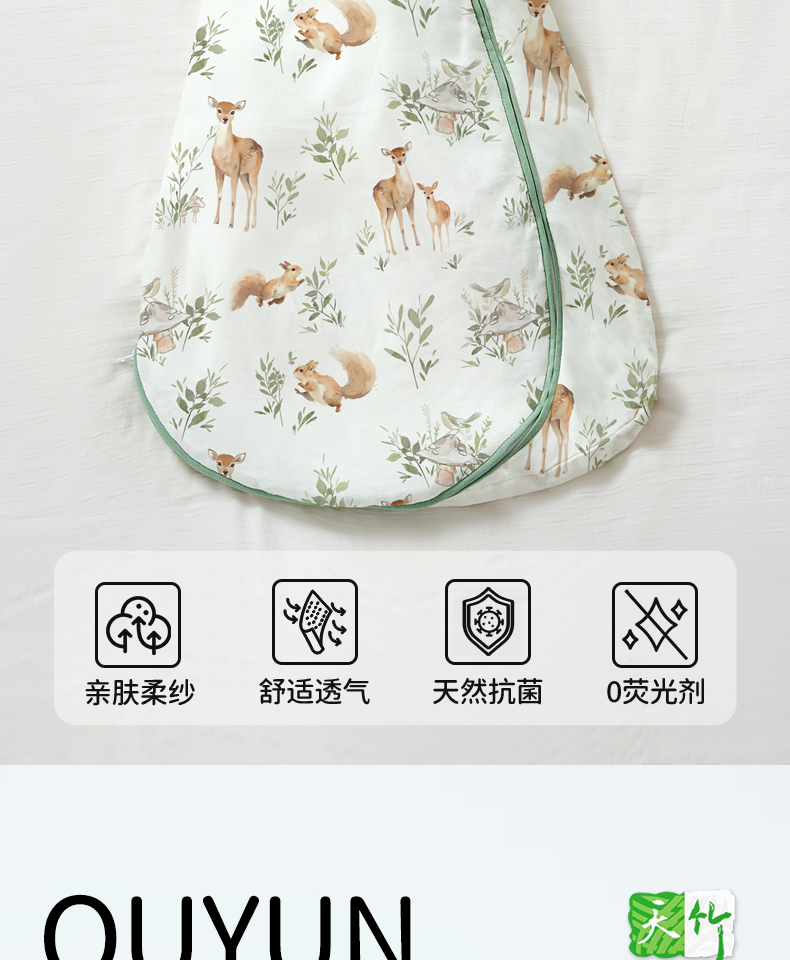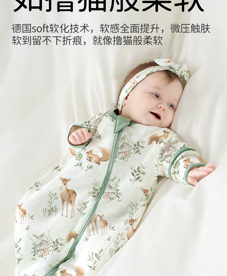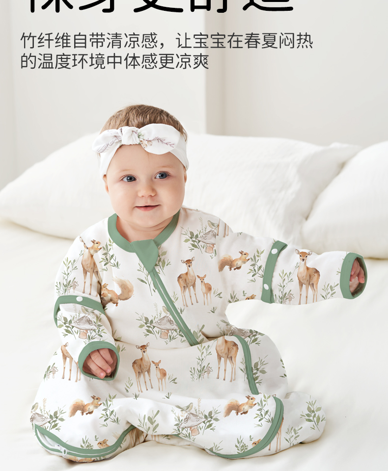 商品名称:欧孕婴儿睡袋春秋冬款宝宝防踢被竹棉纱布新生儿四季通用一体睡袋