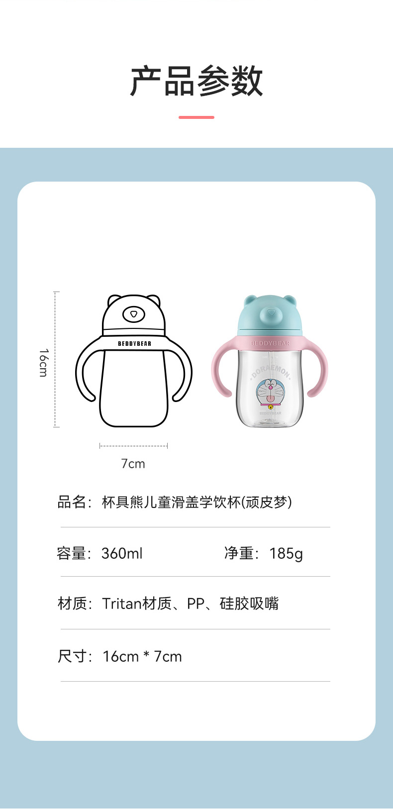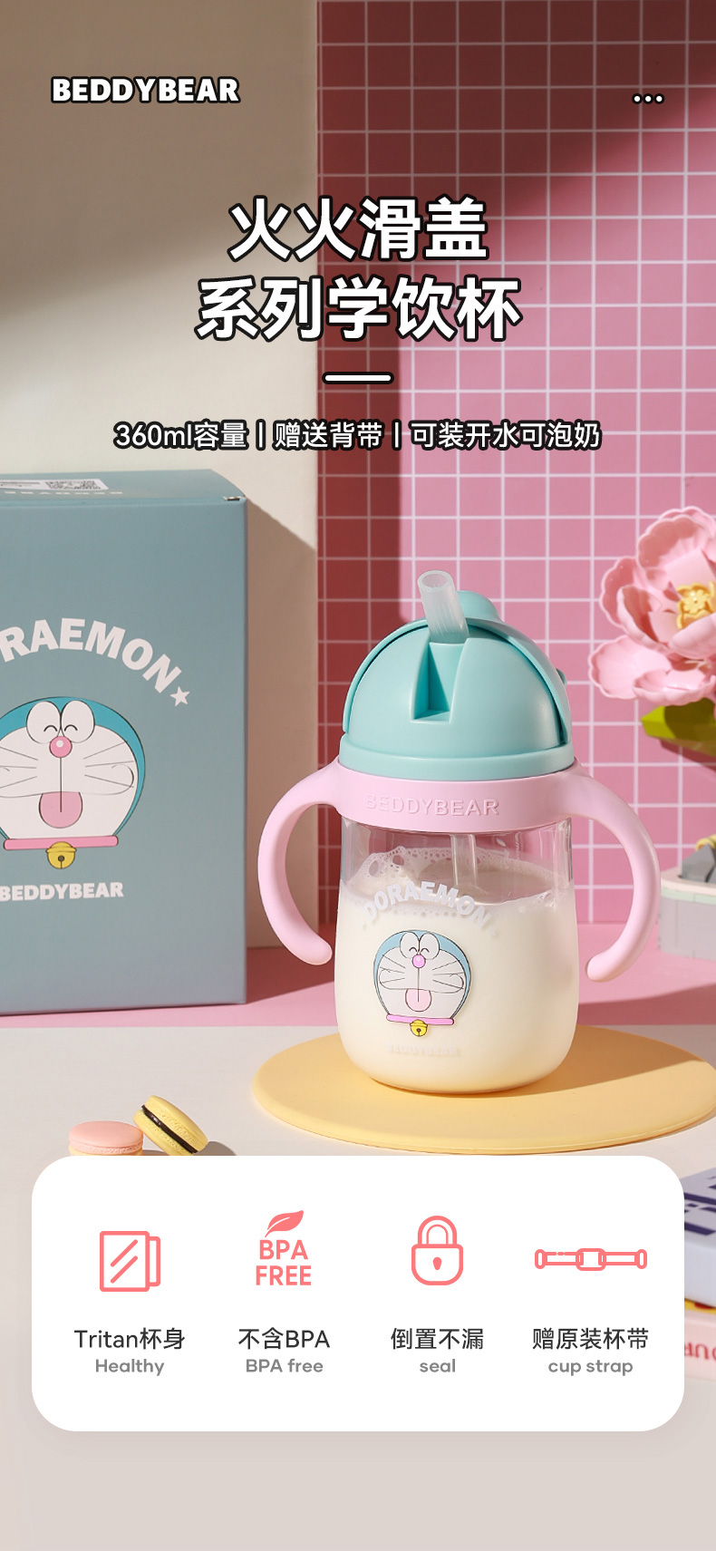 商品名称:【品牌秒杀】杯具熊一杯两用手柄+杯绳儿童吸管杯tritan儿童水杯学饮杯宝宝喝水杯子360ml