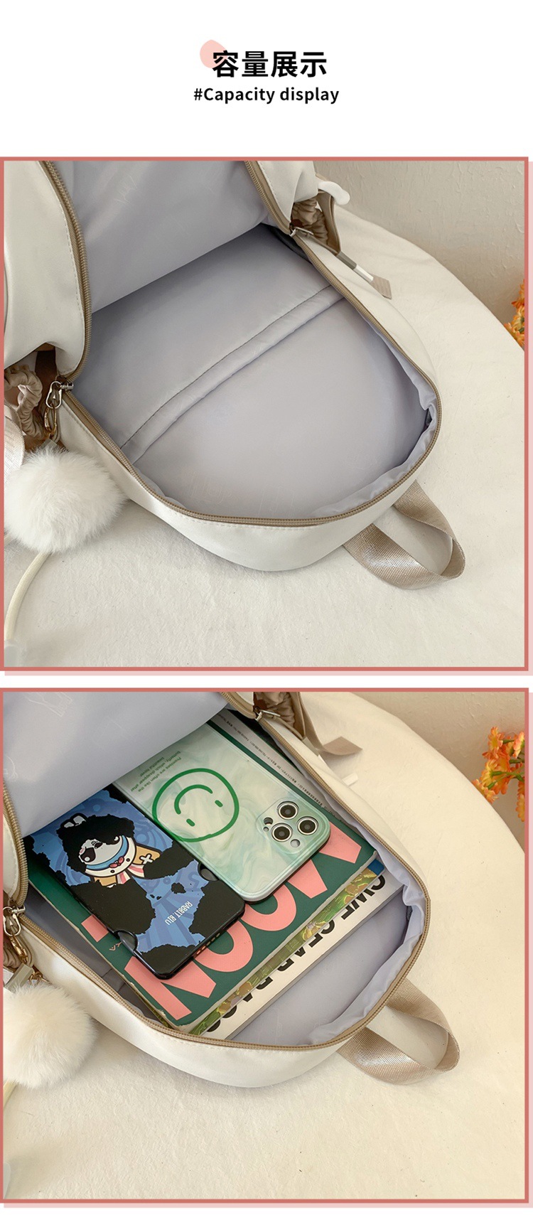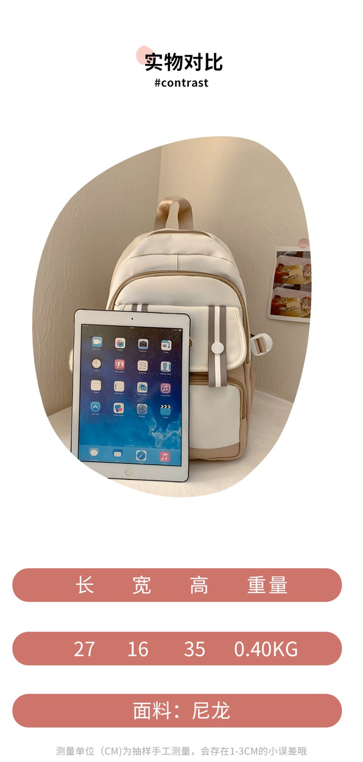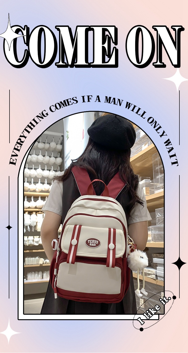 商品名称:彤彤兔 简约时尚休闲双肩包百搭潮流撞色学生书包大容量轻便简约背包