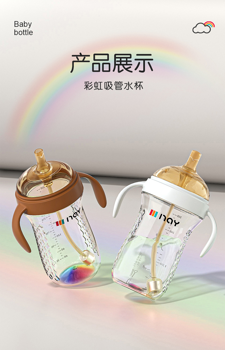 商品名称:网红款彩虹学饮杯宝宝baby吸管杯婴儿6个月以上水杯奶瓶杯耐摔背带硅胶仿母乳超大口径