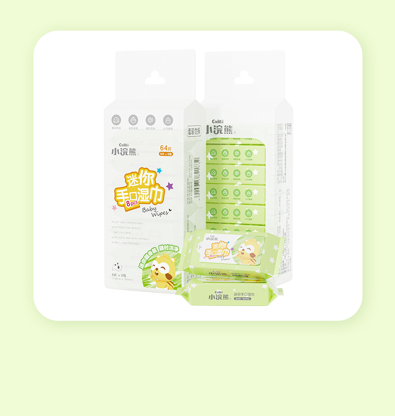 【品牌直供】小浣熊迷你手口湿巾小包湿纸巾随身便携装清洁护肤手口湿巾8抽*8包湿巾纸
