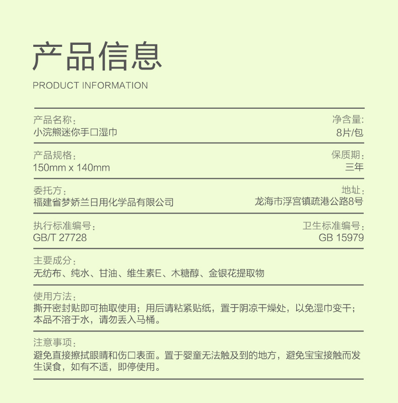 商品名称:【品牌直供】小浣熊迷你手口湿巾小包湿纸巾随身便携装清洁护肤手口湿巾8抽*8包湿巾纸