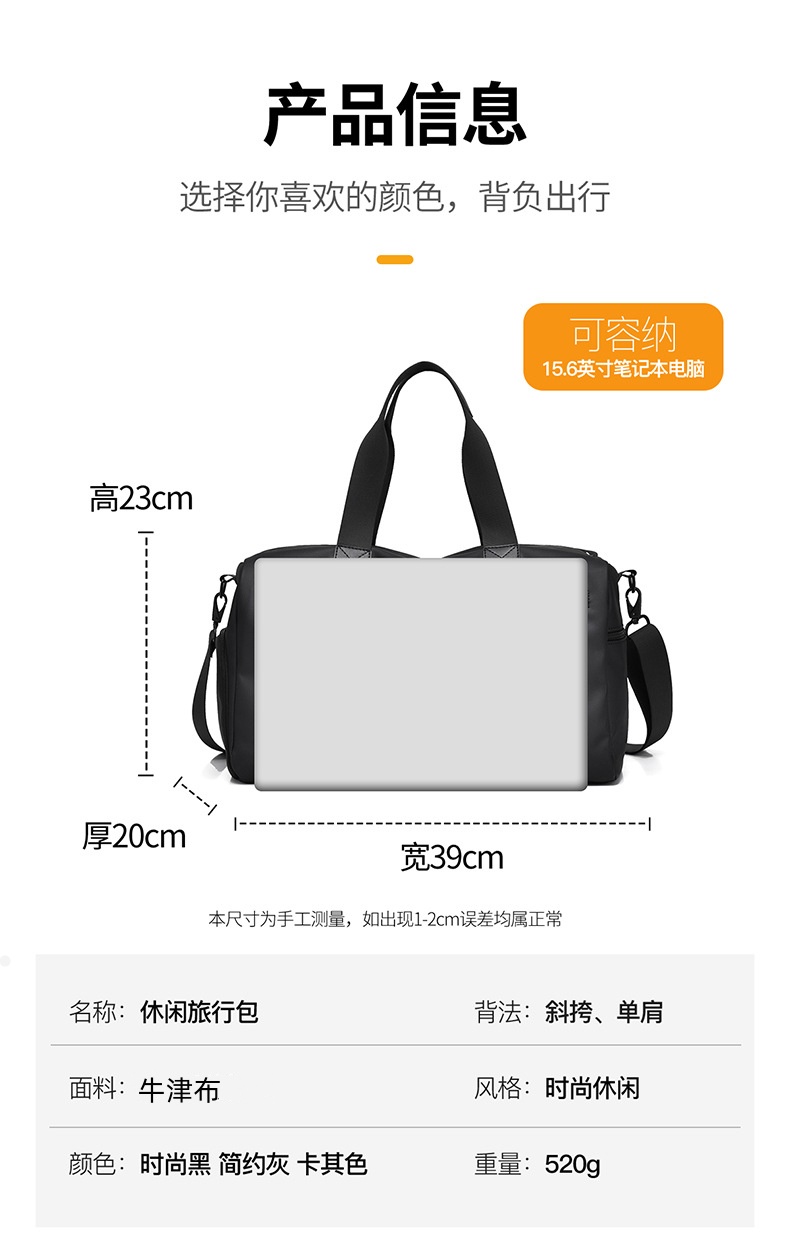 商品名称:彤彤兔 干湿分离健身户外休闲短途出差旅行包大容量个性短途休闲行李袋
