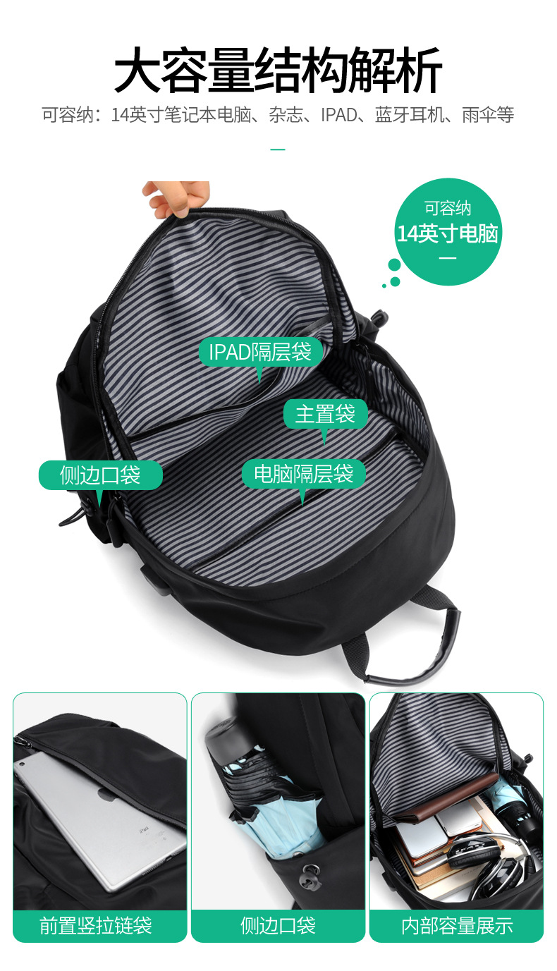 商品名称:彤彤兔 休闲双肩包男士背包旅游潮牌14寸大学生书包时尚韩版电脑 包旅行包