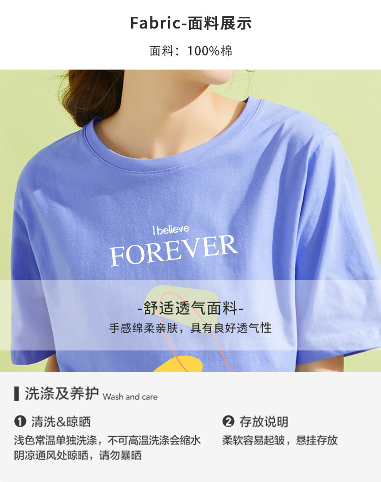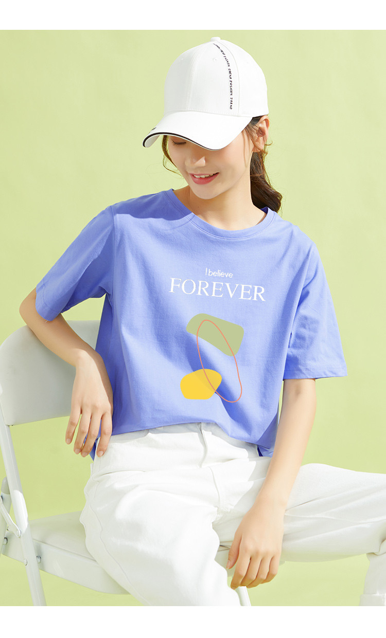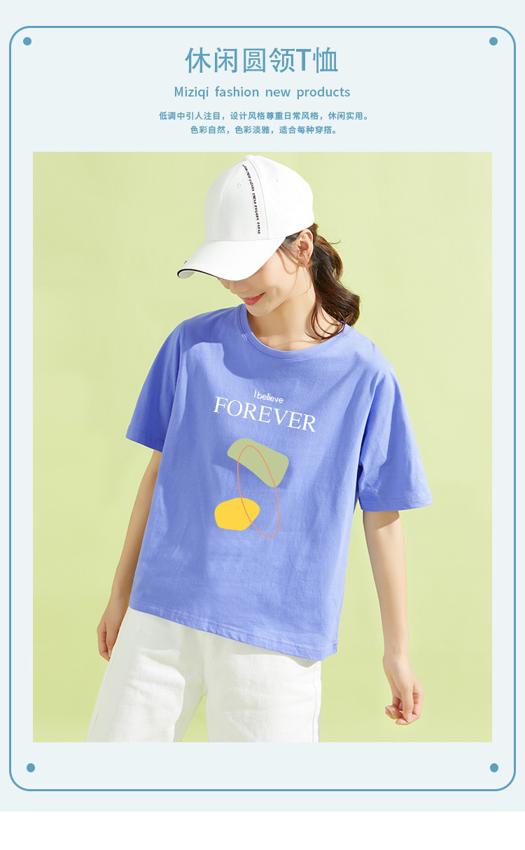 商品名称:米子旗夏季字母印花T恤百搭圆领宽松短袖t恤遮肉显瘦高级感上衣 385370