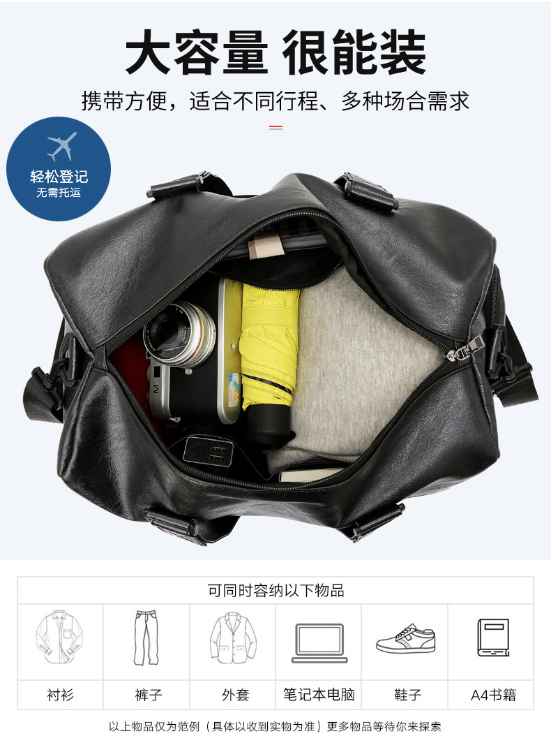 商品名称:彤彤兔 短途旅行包健身包潮女瑜伽运动训练包男PU防水手提旅行袋