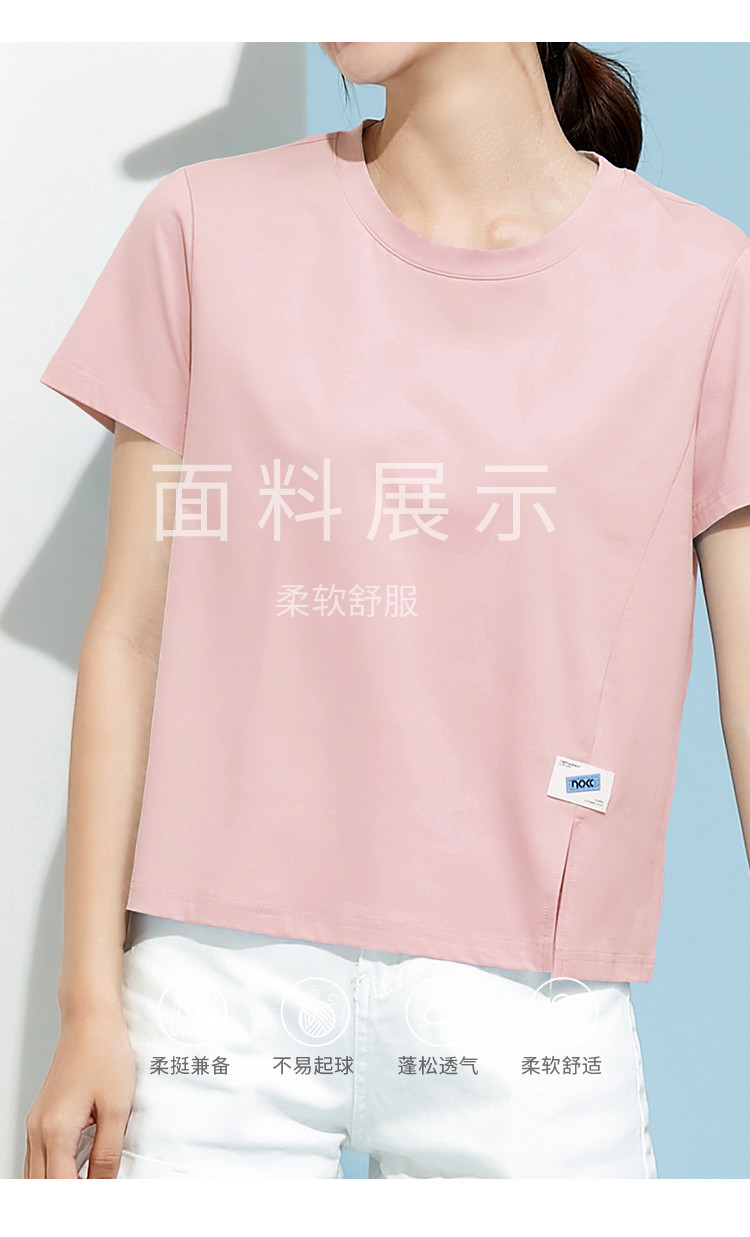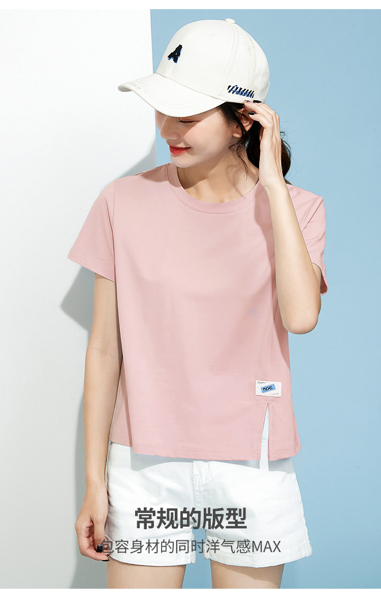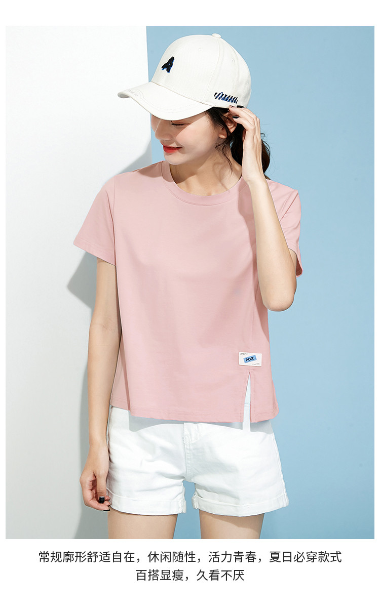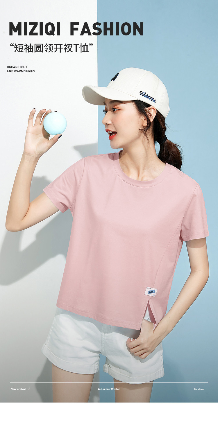 商品名称:米子旗春秋圆领女式T恤纯色短款短袖上衣简约百搭 048410