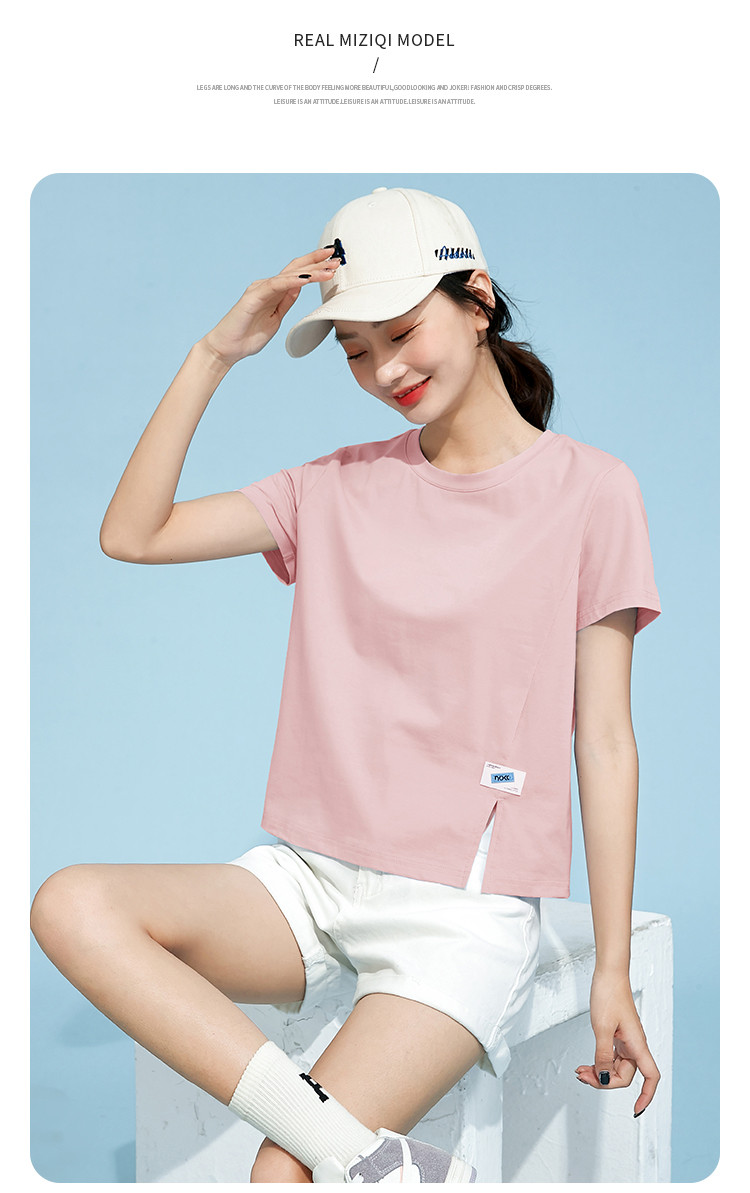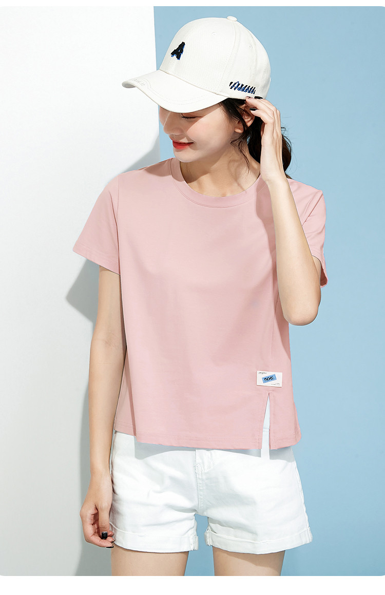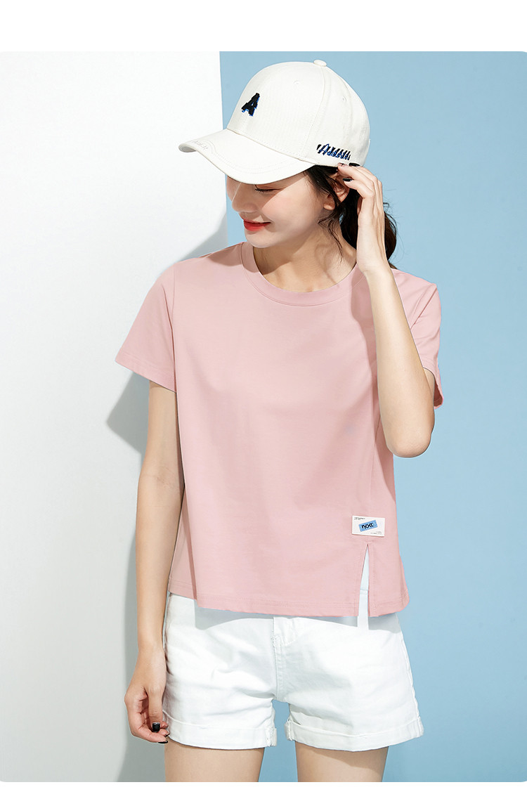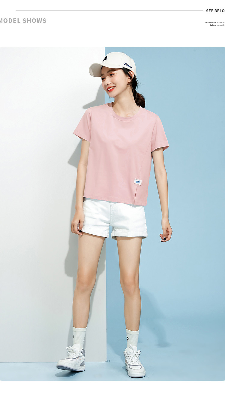 商品名称:米子旗春秋圆领女式T恤纯色短款短袖上衣简约百搭 048410