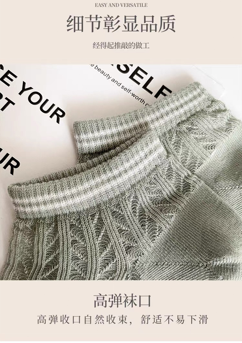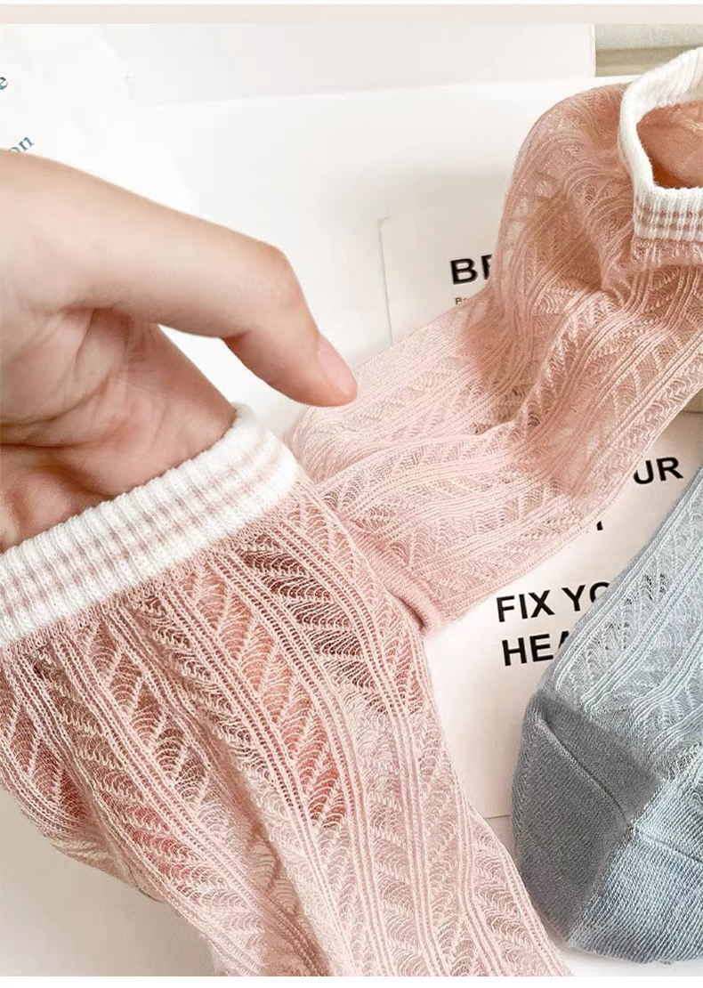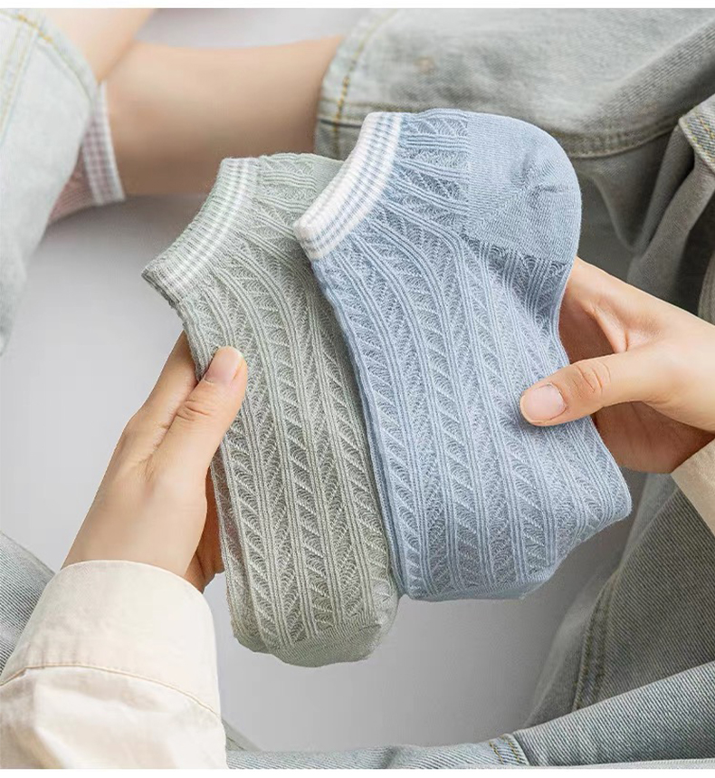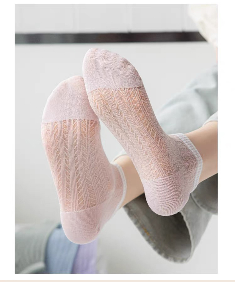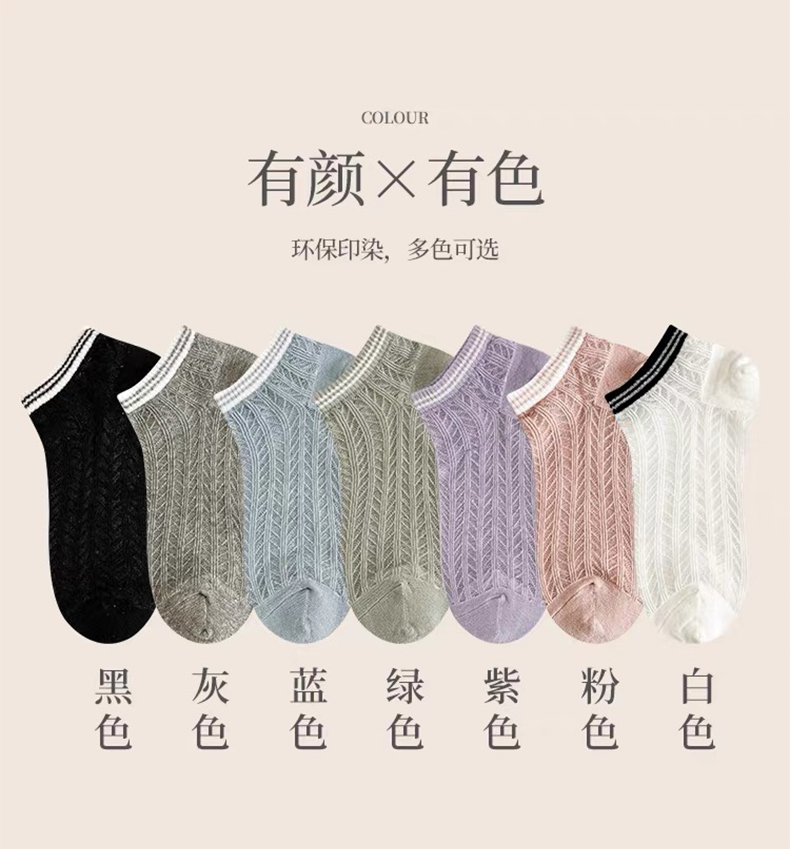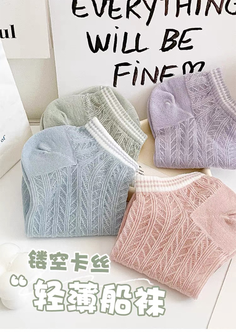 商品名称:【5双装】朝暮栖止女士横条镂空卡丝船袜透气吸汗船袜子
