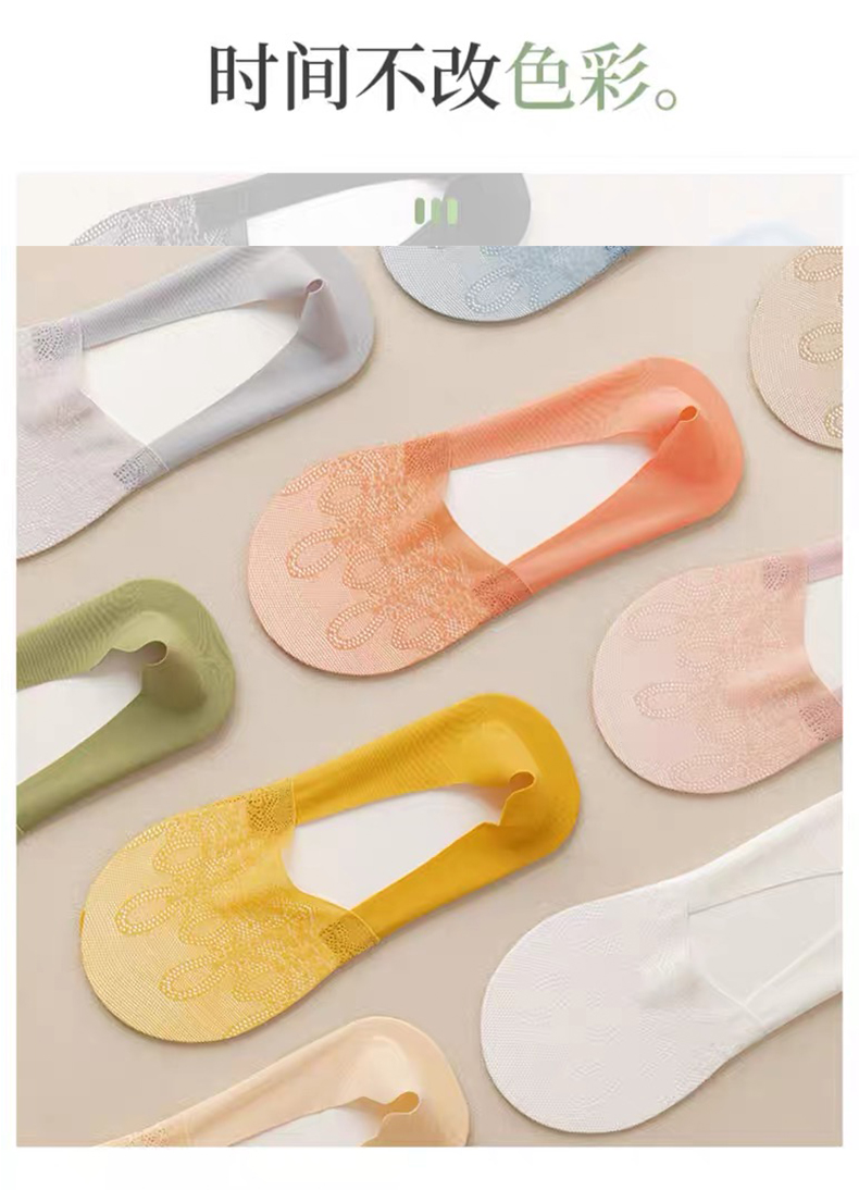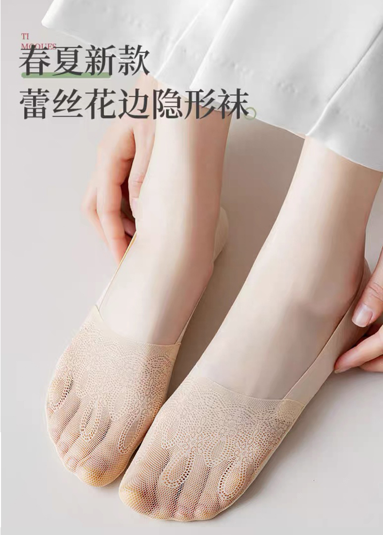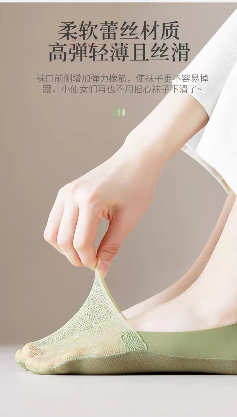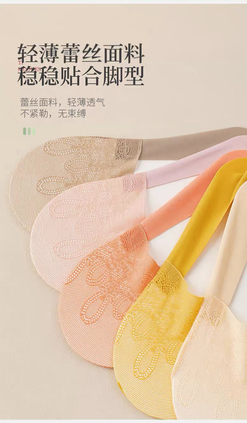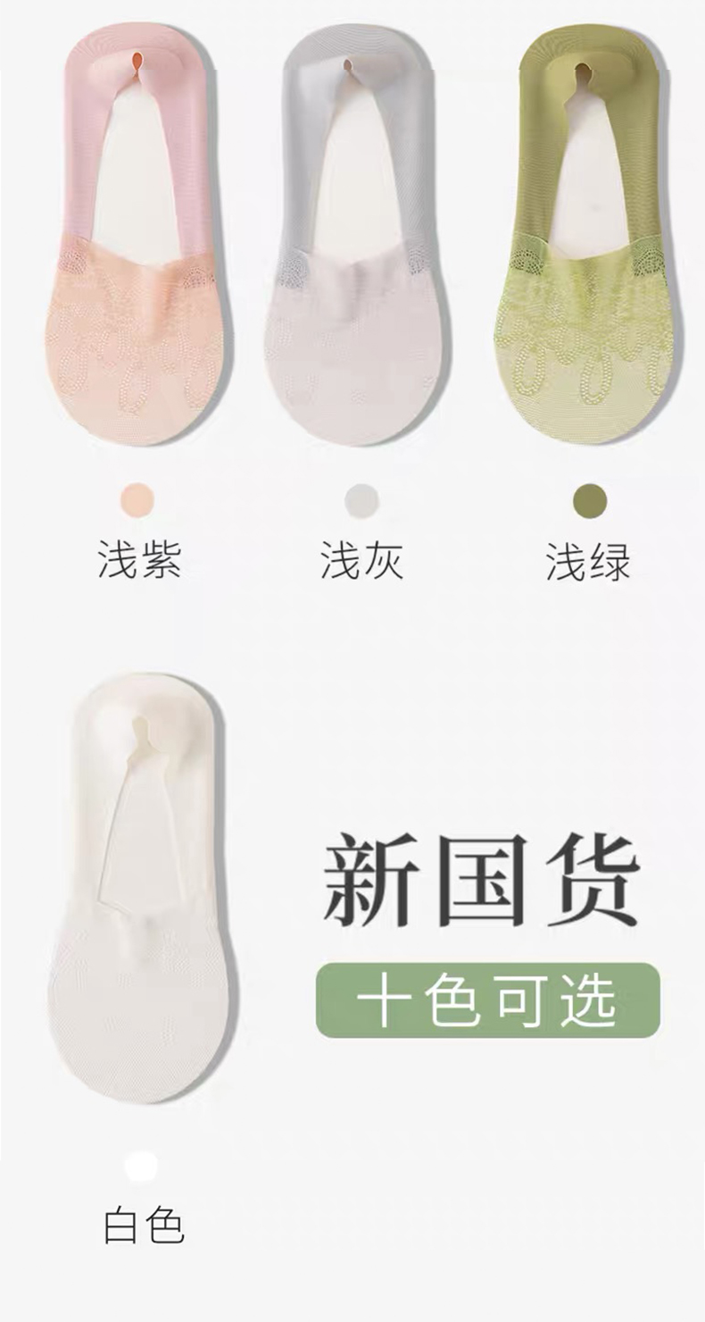 商品名称:【5双装】朝暮栖止女士侧边网眼隐形袜透气吸汗蕾丝浅口硅胶防滑船袜子