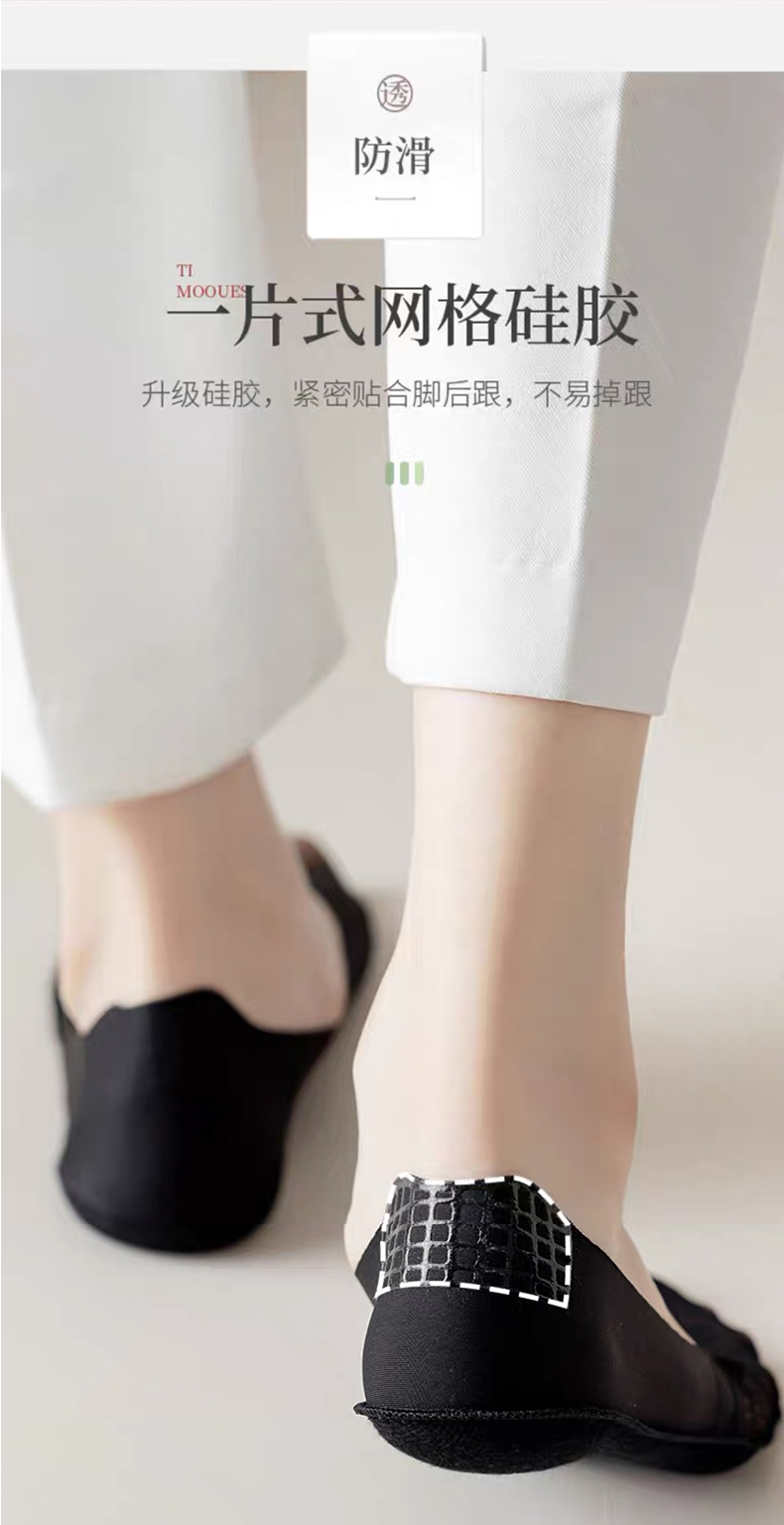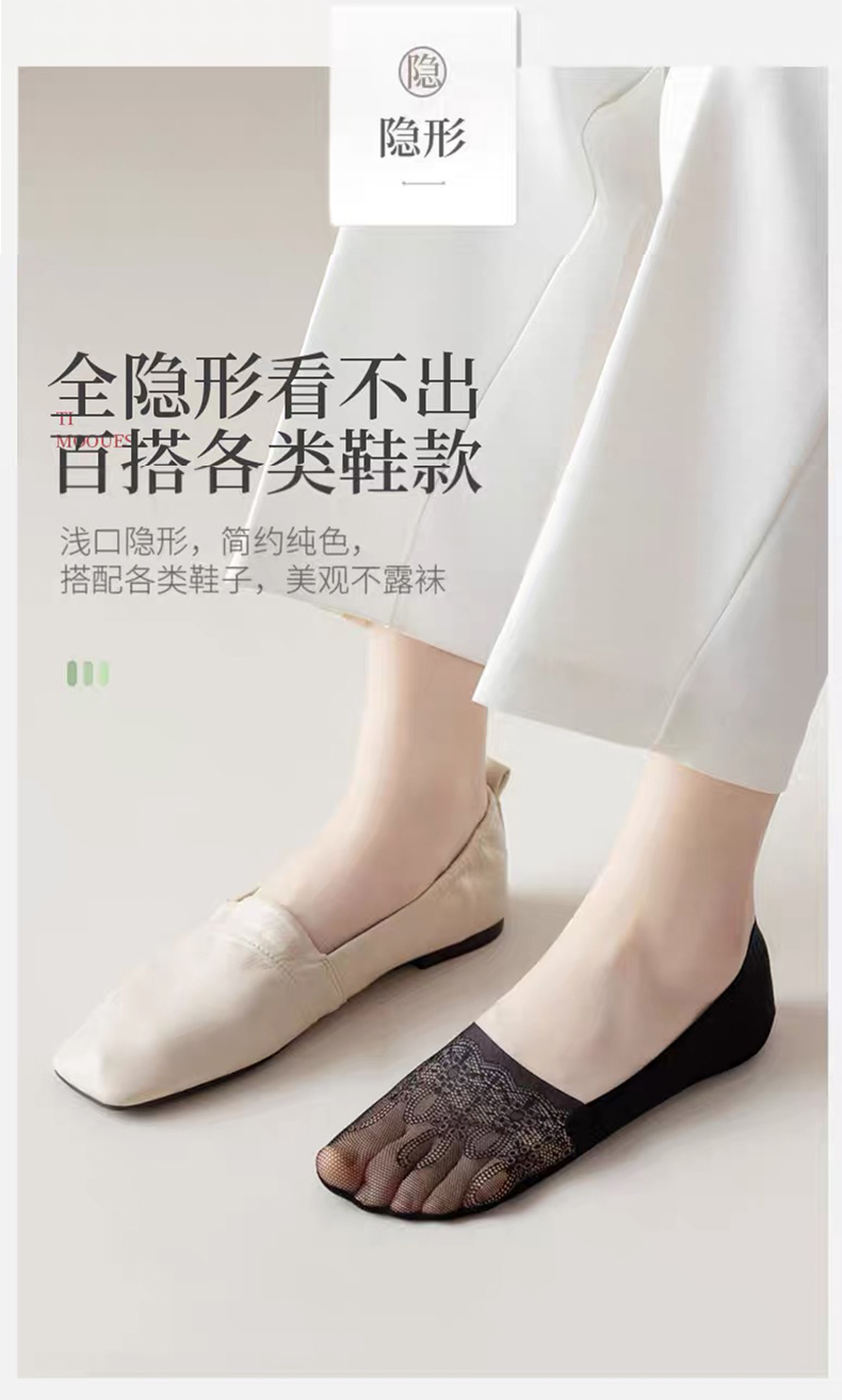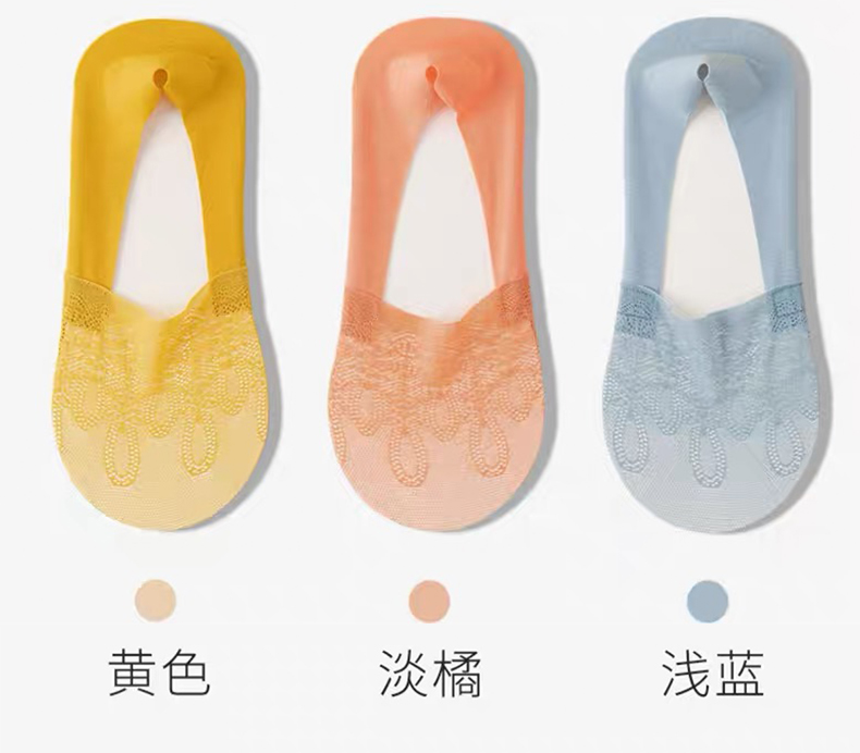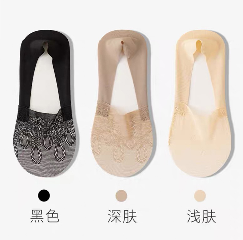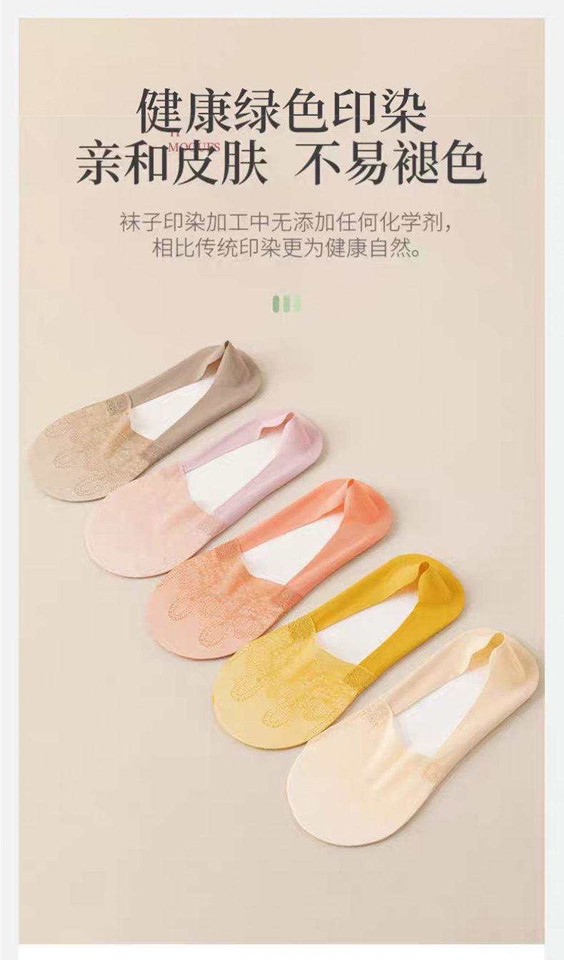 商品名称:【5双装】朝暮栖止女士侧边网眼隐形袜透气吸汗蕾丝浅口硅胶防滑船袜子