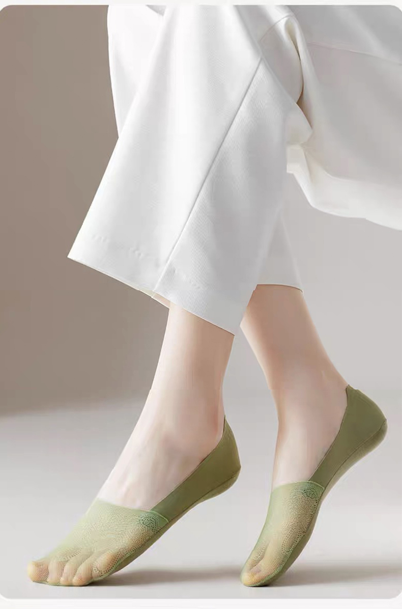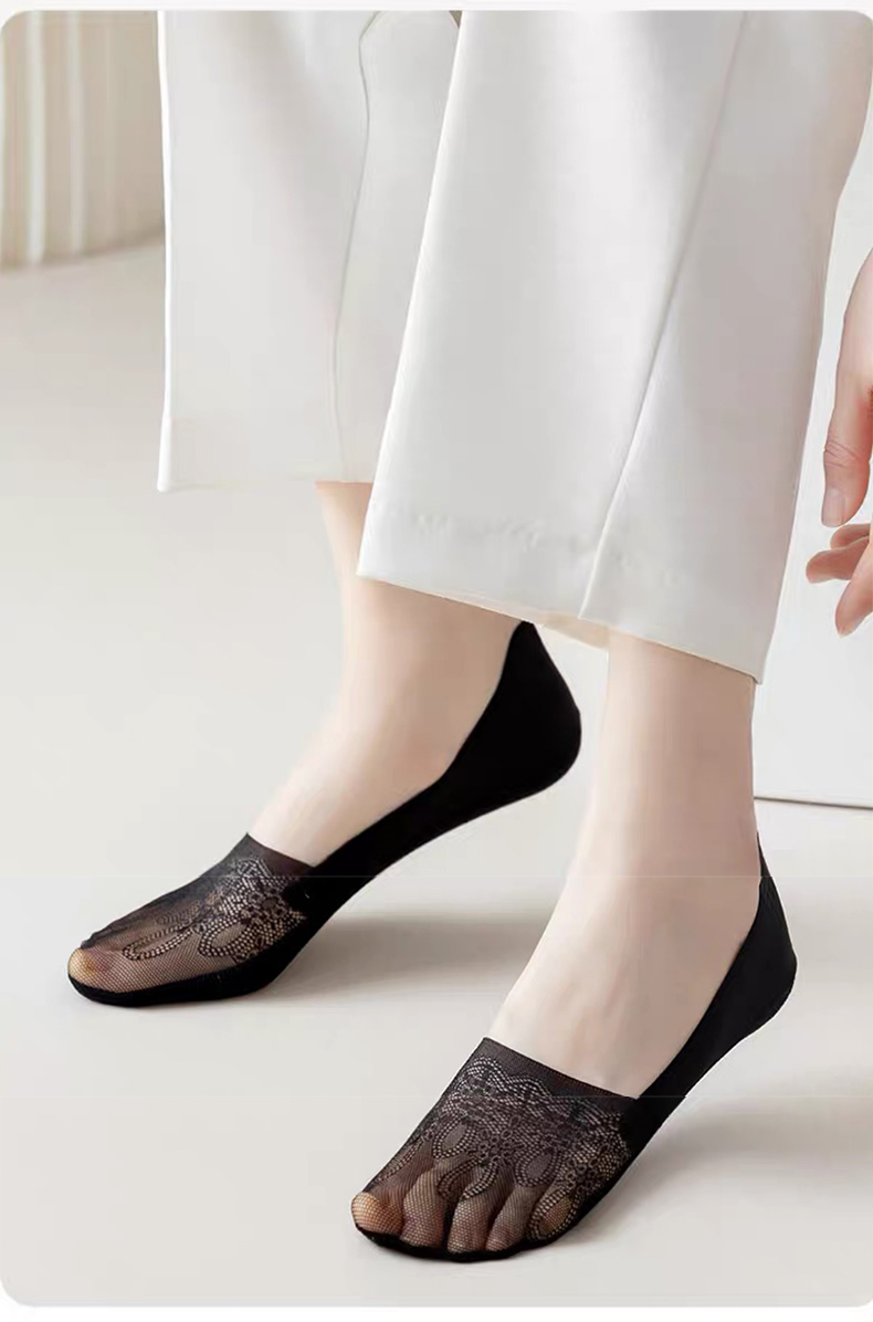 【5双装】朝暮栖止女士侧边网眼隐形袜透气吸汗蕾丝浅口硅胶防滑船袜子