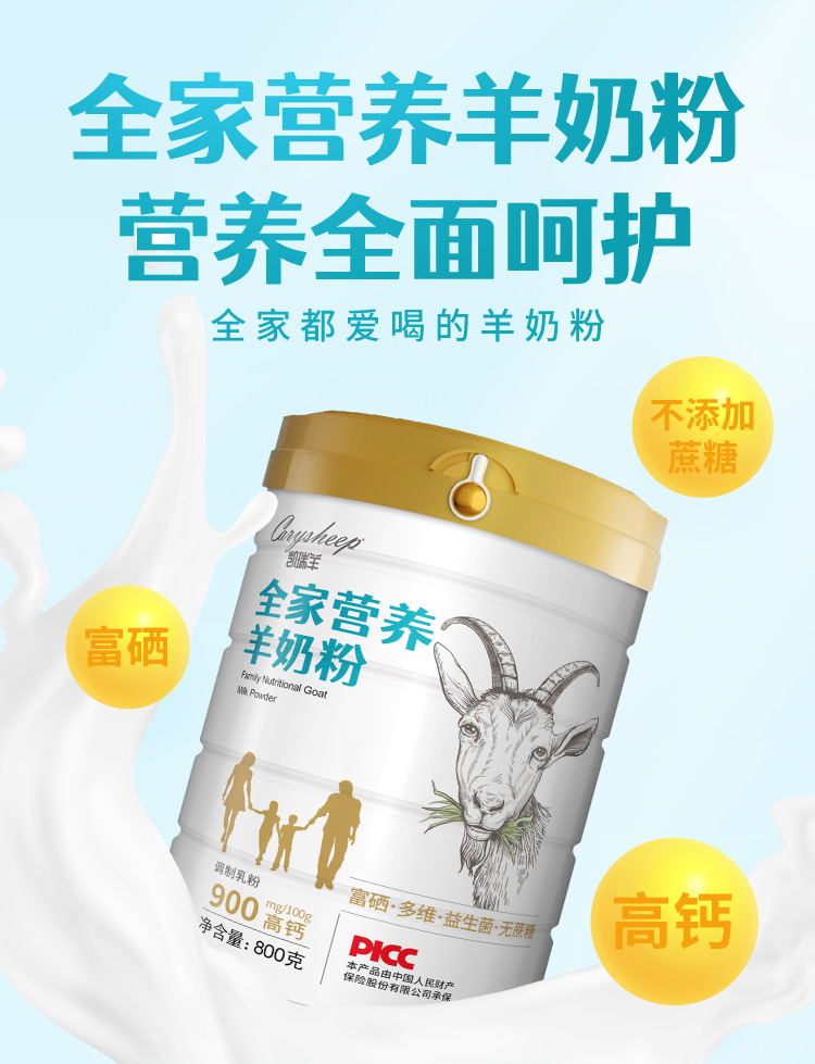 商品名称:凯瑞羊全家营养羊奶粉800克/罐高钙高蛋白益生菌奶粉儿童成人中老年女士